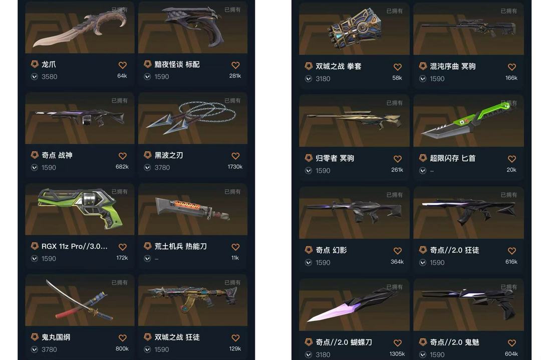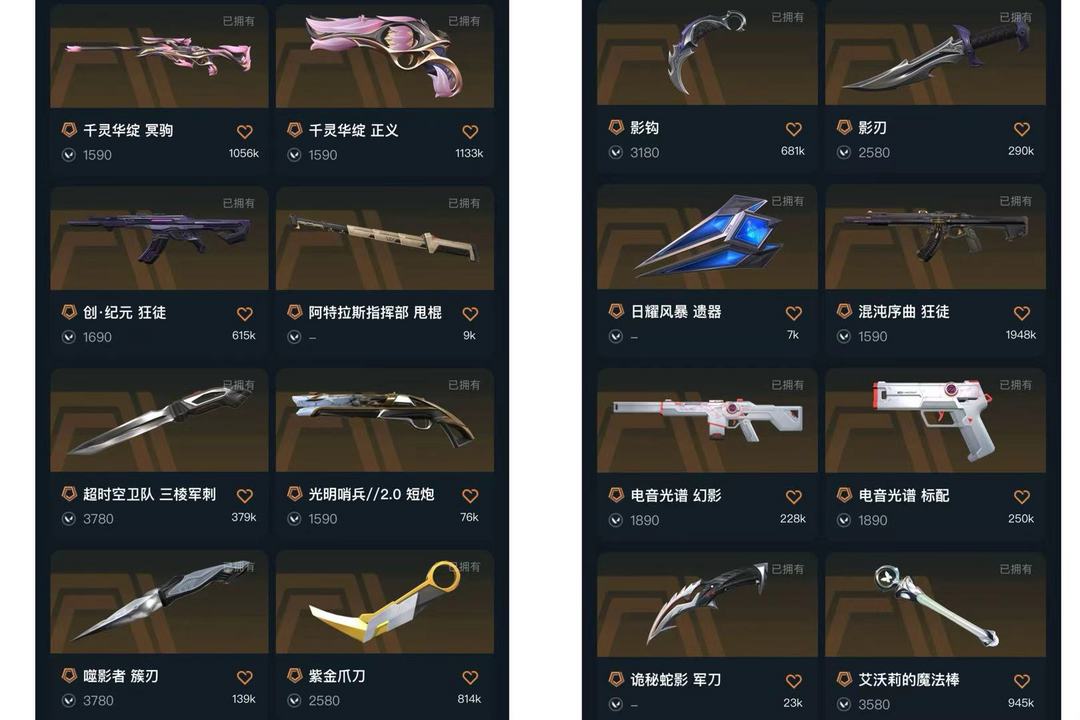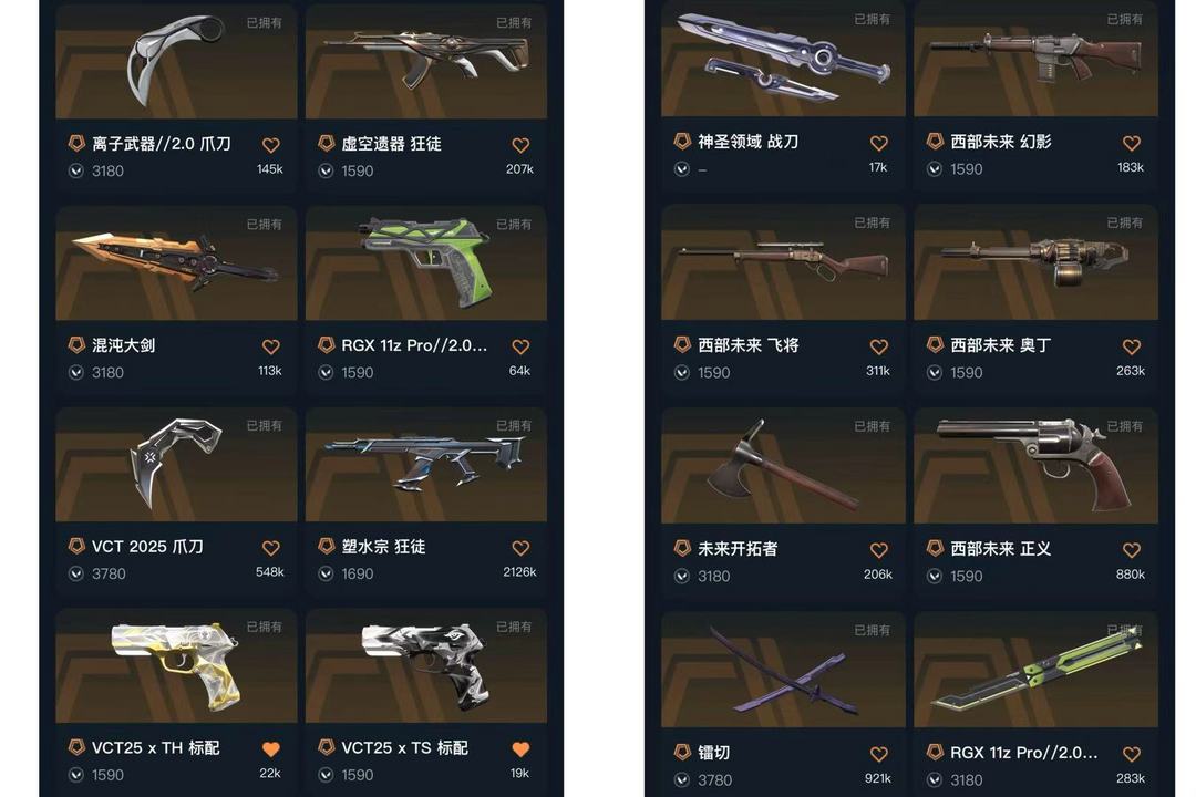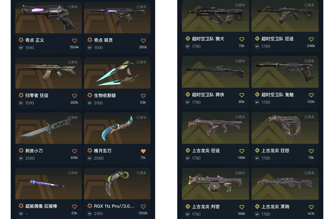 冻结秒解✨可排32万库存✨超时空卫队套✨掠影2.0套✨离子武器2.0✨西部未来✨VCT爪刀上古龙炎✨