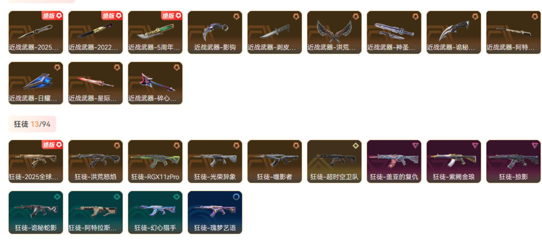武器皮肤数量:106