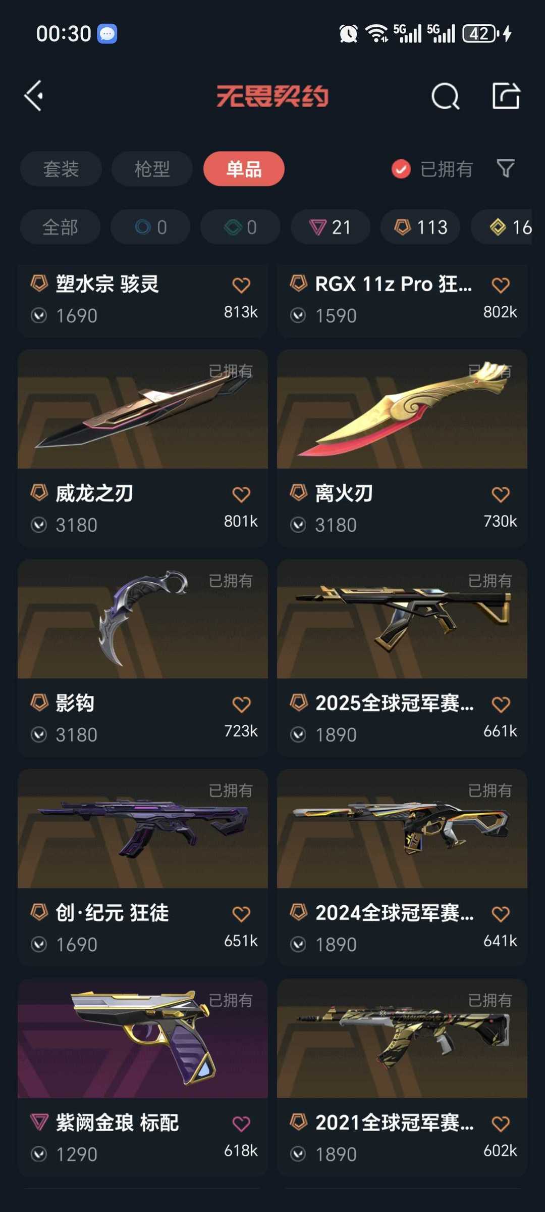 传奇数量:113