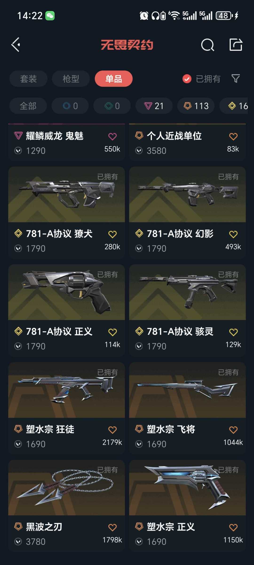 武器皮肤数量:287