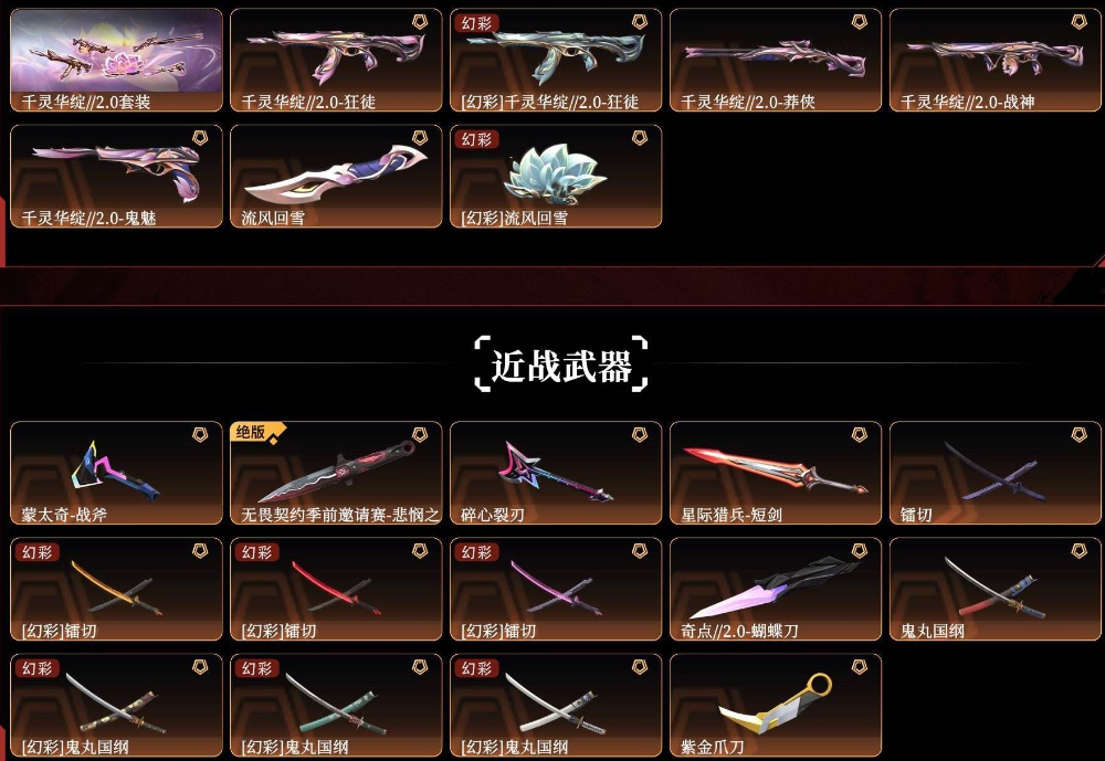 ⭐【怜悯之刃】⭐千灵华绽2.0套⭐紫金爪雷切鬼丸奇点刀⭐盖亚朔水创纪原混沌猫猫AK⭐侦察幻影离子狙