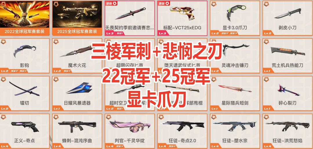 可排位✅顶级10W库存✅超时空三棱刀⭐22冠军套⭐25冠军套⭐季前邀请赛悲悯之刃⭐显卡爪刀⭐创纪元⭐