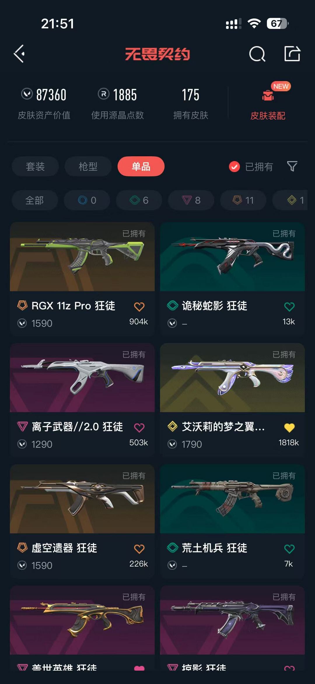 装备描述:全角色一年没打排位适合带妹皮肤多,25年之前的ak皮肤大部分都有