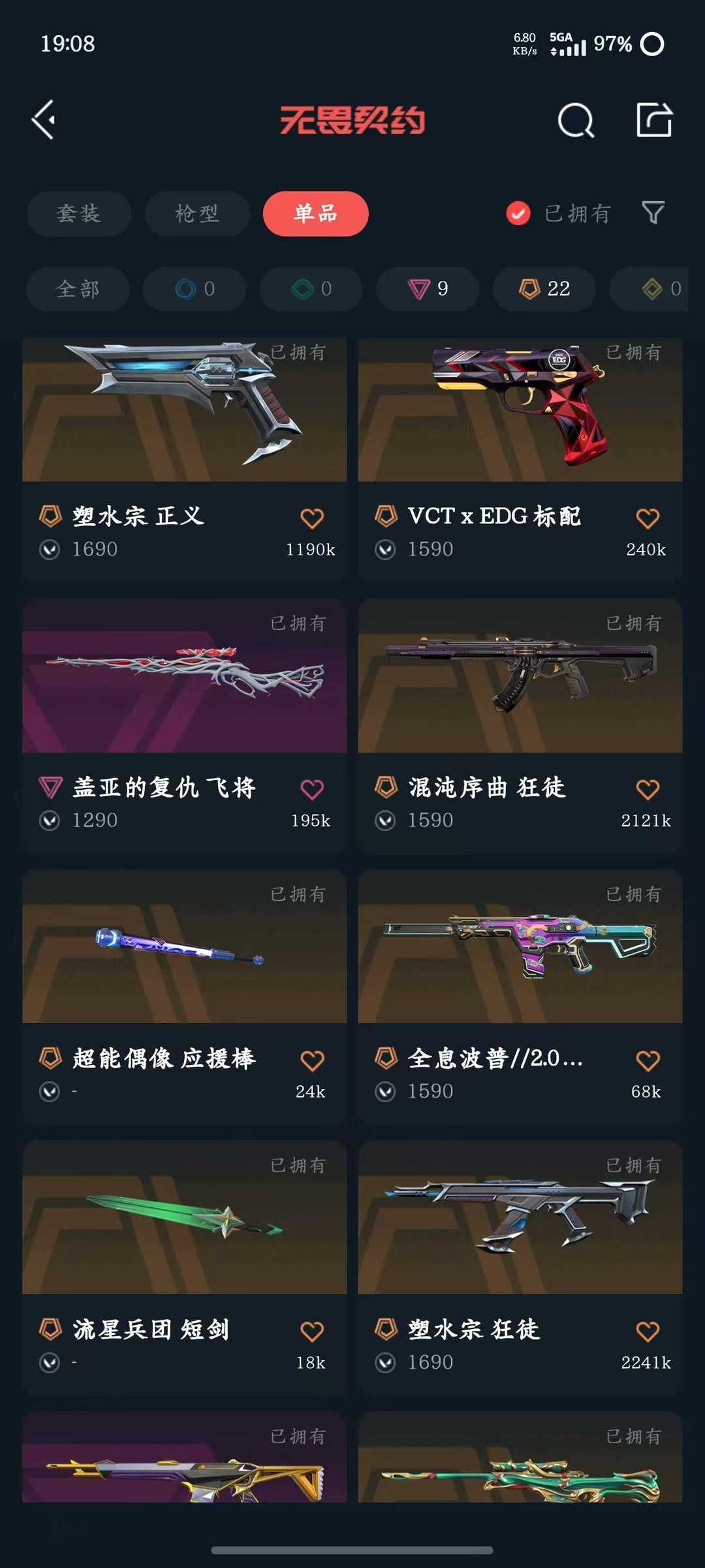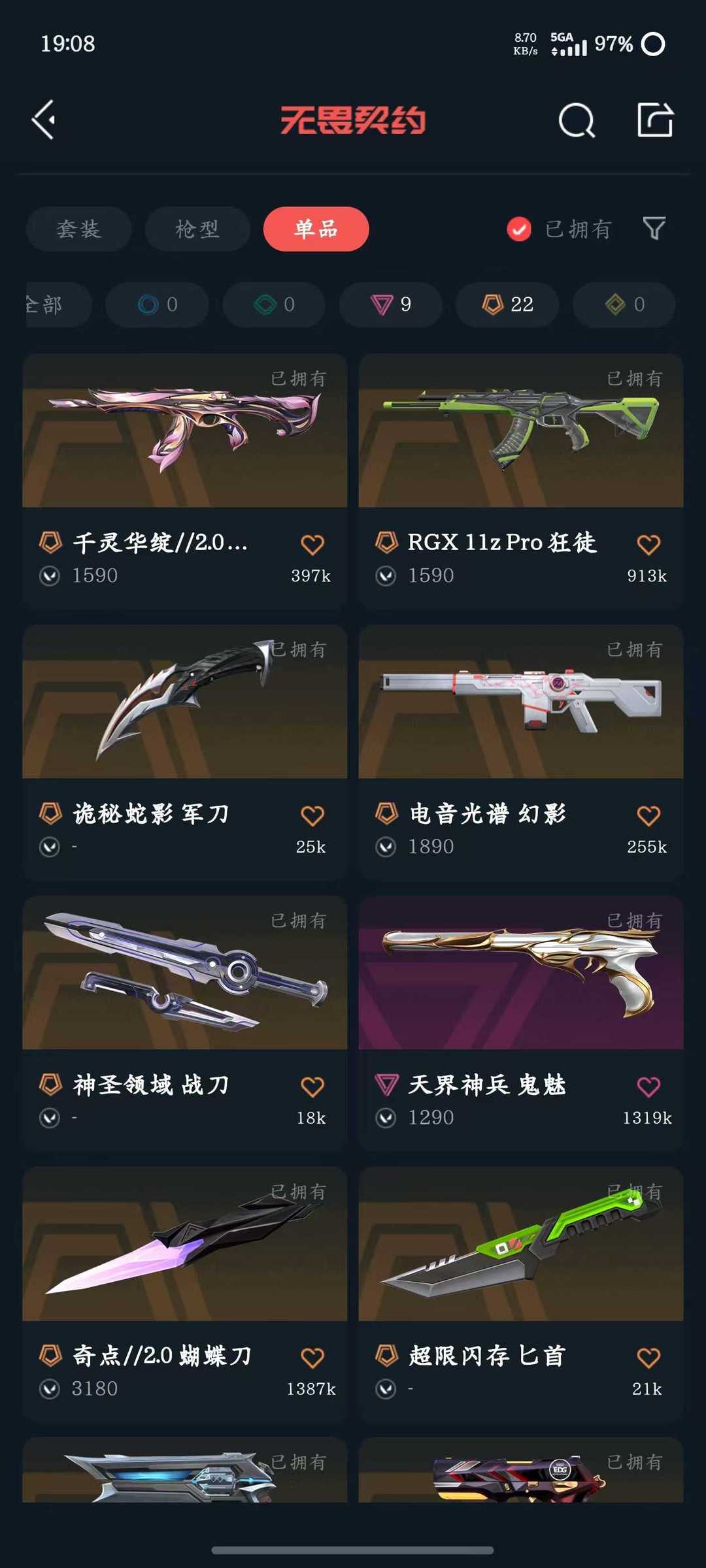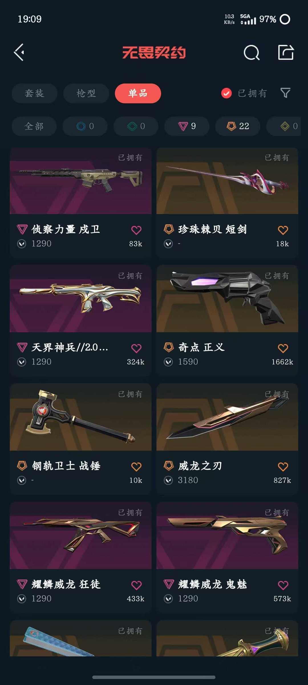 传奇数量:22