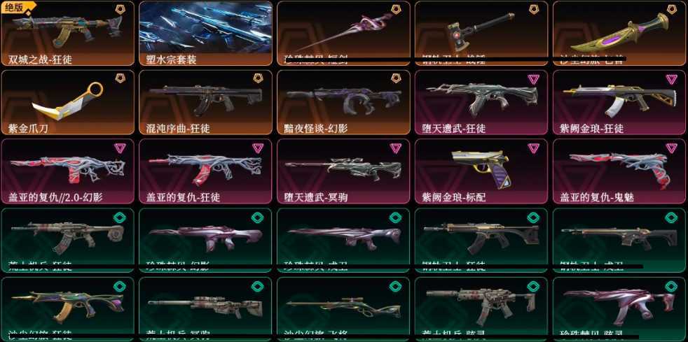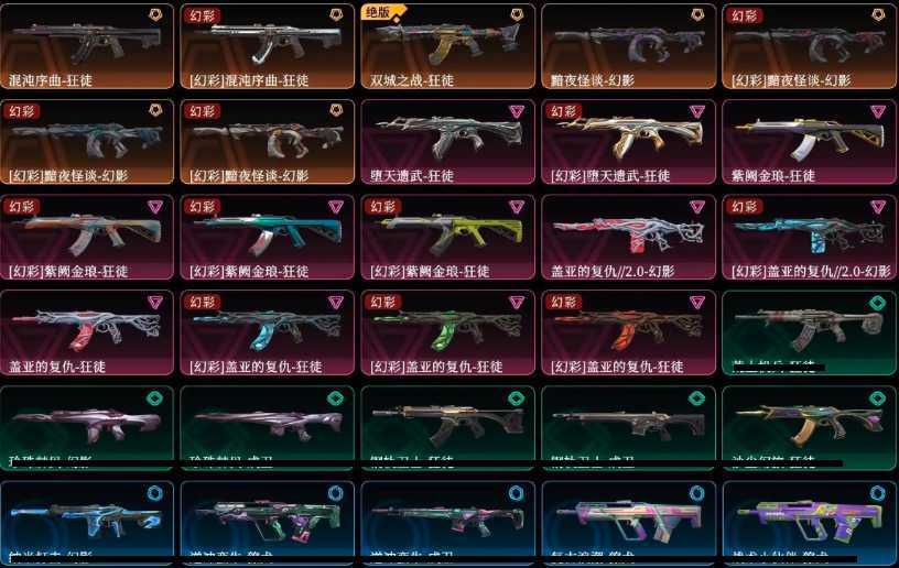 可排位大库存✨塑水套✨黑波之刃✨爆爆AK✨弃王大狙✨混沌✨盖亚✨侦查✨黯夜✨紫金爪刀✨各种散件炫彩
