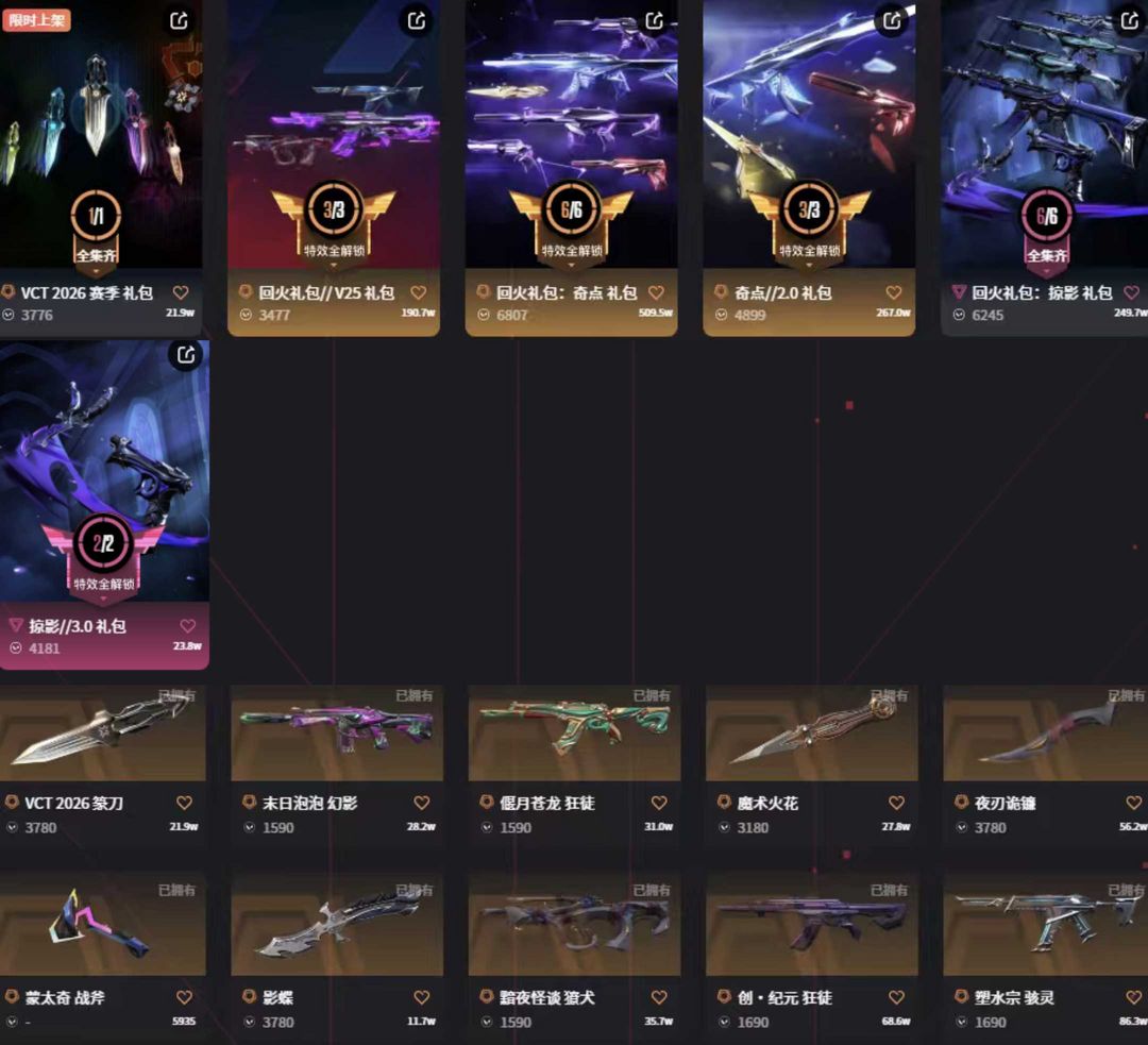 10万库vct篆刀影碟魔法棒魔术火花✨掠影3.0套奇点全套✨赤焰青龙混沌紫金青龙ak✨末日特工队m4