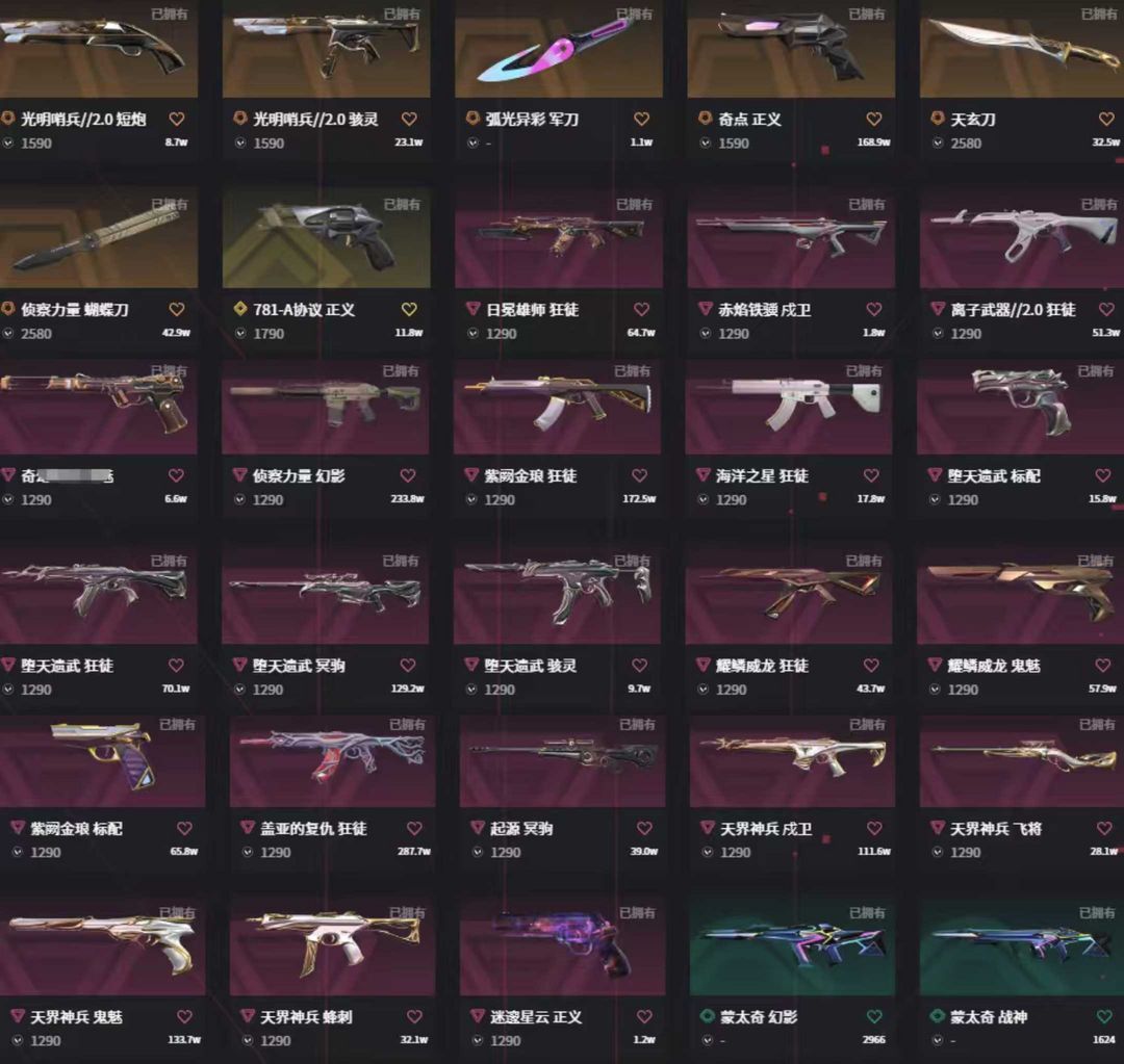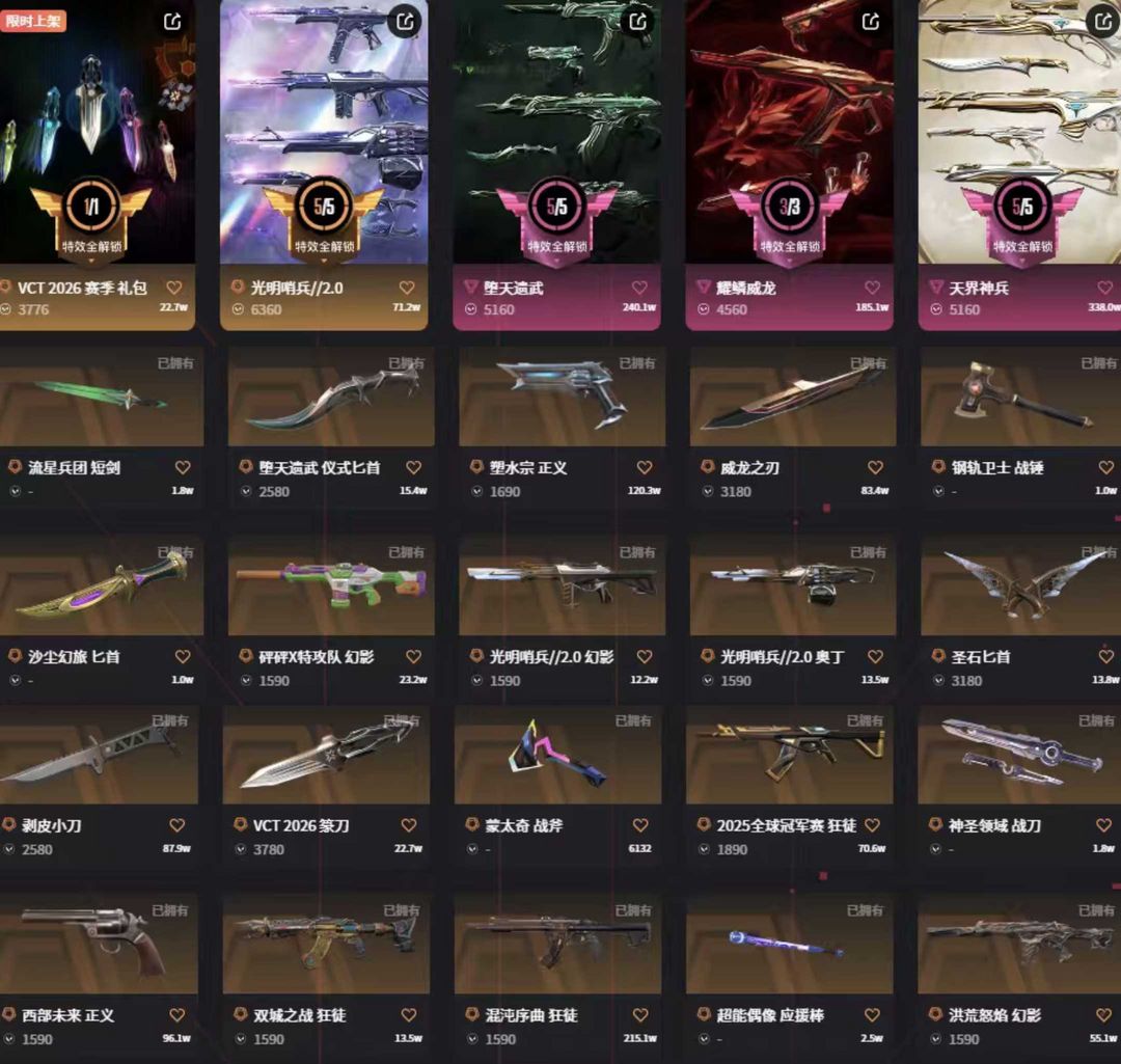 10万库vct篆刀剥皮刀✨光明套弃王套威龙神兵套✨25冠弃王盖亚混沌双城离子ak✨流脓特工队m4