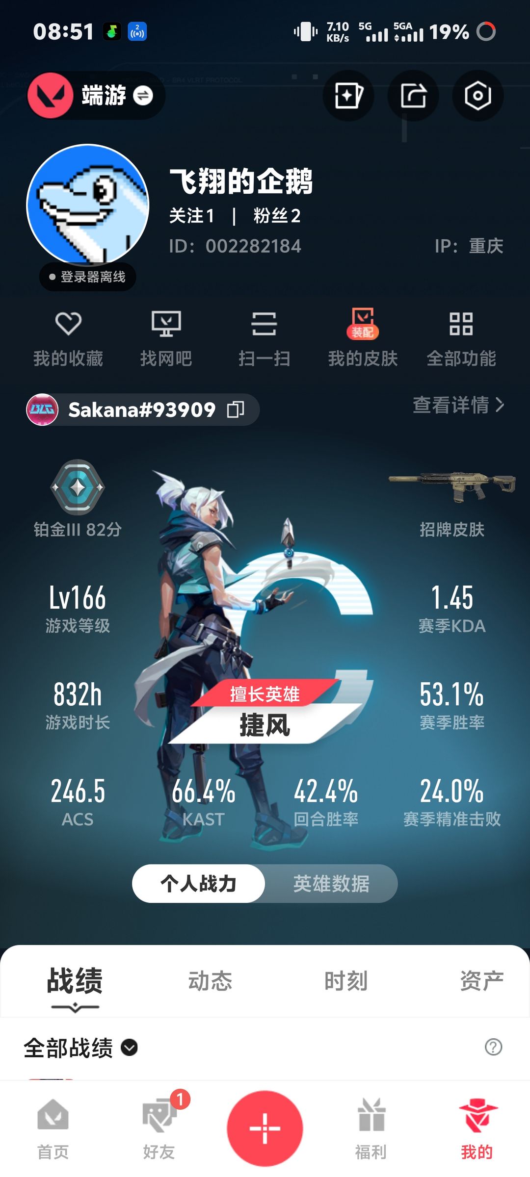 装备描述:无畏契约账号 ID:Sakana#93909等级:Lv166 | 游戏时长:832h赛季胜率:53.1% | 擅长英雄:捷风 | 可正常排位 / 匹配皮肤资产:94 款(含 38 蓝、22 绿、10 紫、23 橙、1 金),总价值 56420源晶点数:1220,无封禁 / 冻结记录,安全稳定 【核心皮肤亮点】近战武器:奇点 //2.0、镭切、剥皮小刀、天玄刀、魄月玄刃、弧光异彩军刀等多把稀有刀皮 热门枪械:盖亚的复仇狂徒、紫阙金琅狂徒 / 标配、堕天遗武狂徒、般若假面戍卫、机动狂飙全系列、珍珠棘贝全系列、信手涂鸦全系列等 限定皮肤:VCT 2025 爪刀、VCT 赛事皮肤、天界神兵鬼魅等稀缺限定款 【出租须知】 仅用于正常游戏,禁止开挂、刷分、恶意挂机,违者立即收回账号并追责 严禁修改密码、绑定信息或泄露账号给他人 本人实名注册,无找回风险,诚信出租,非诚勿扰