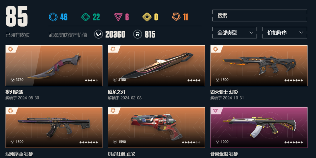 武器皮肤数量:85