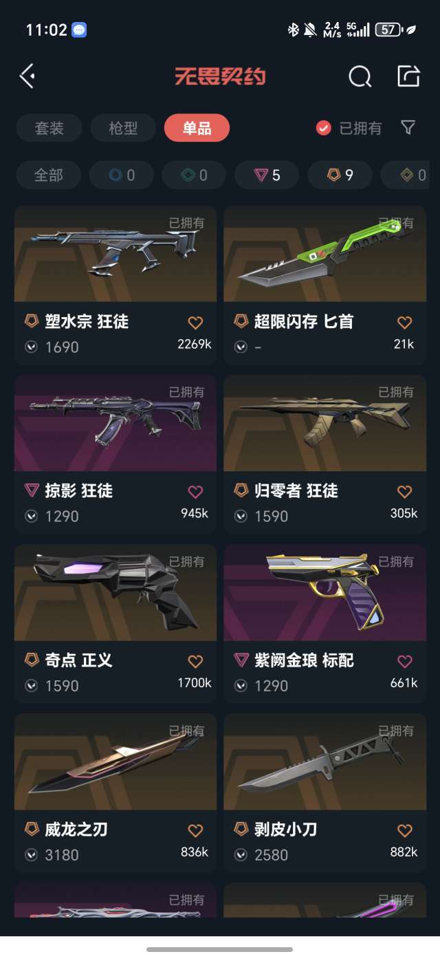 装备描述:紫金,塑水,弃王,归零,盖亚狂徒。 侦查幻影 紫金标配,奇点正义 剥皮小刀,威龙小刀,侦查蝴蝶刀