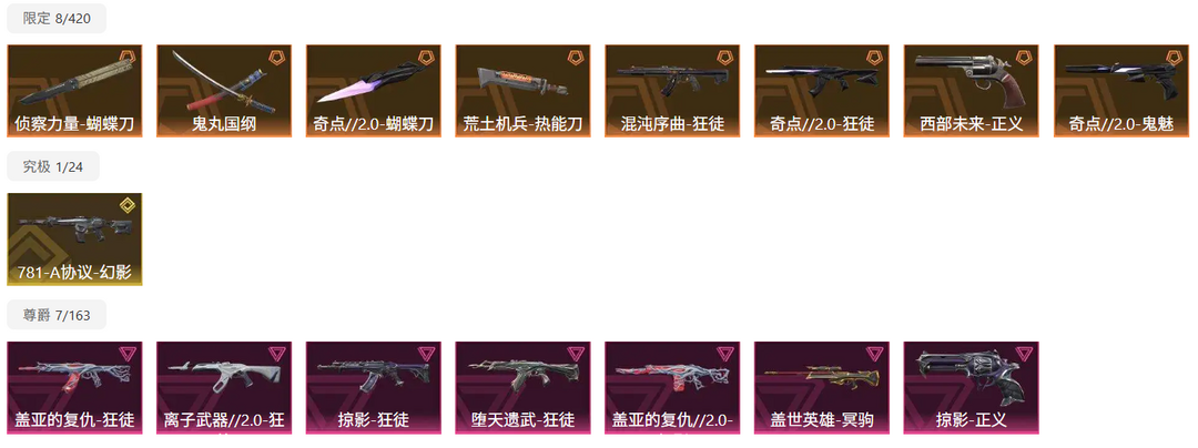 鬼丸奇点蝴蝶刀✅混沌盖亚离子掠影堕天遗武狂徒✅781幻影盖世英雄大狙