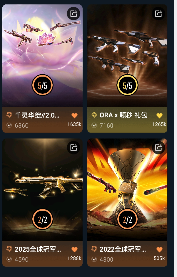 5万库存❤️22年冠军套❤️25年冠军套❤️颗秒套装❤️千灵套装❤️创纪元ak❤️掠夺幻影