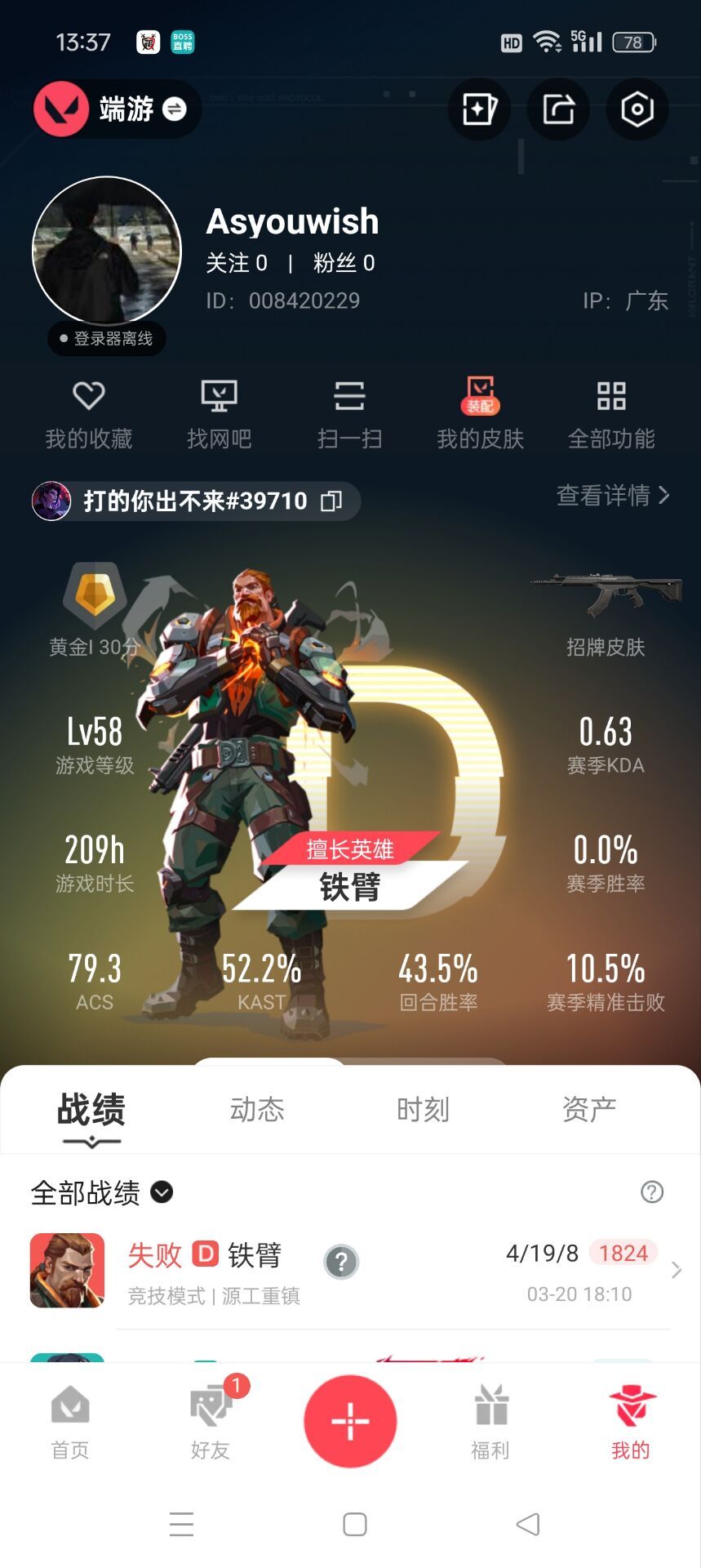 装备描述:请勿挂机,控爆头率不要暴力炸!;炸鱼哥看一下,对局请爆头率控在35%以下,异地一定会判定炸鱼,会封号,会封机器码,会拉黑 。账号提示异地冻结了,请等会一分钟会解开;本账号经过网络财产备案价值,一经发现开挂直接报警处理立案追责,根据账号价值全额赔偿感谢支持谢谢合作 。喜欢,记得收藏!!