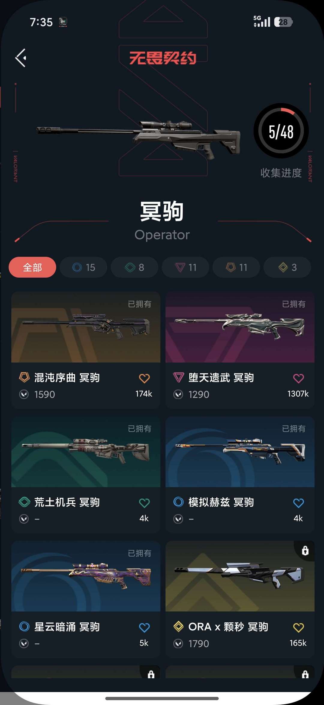 装备描述:ak(混沌,塑水宗,波谱,机车,猫猫,掠夺),创纪元全套,24冠军幻影,弃王大狙,显卡爪子,标配vct-prx