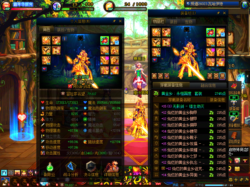 装备描述:增幅15武器剑魂,白剑,金光闪闪,黄金甲,天1,8W名望