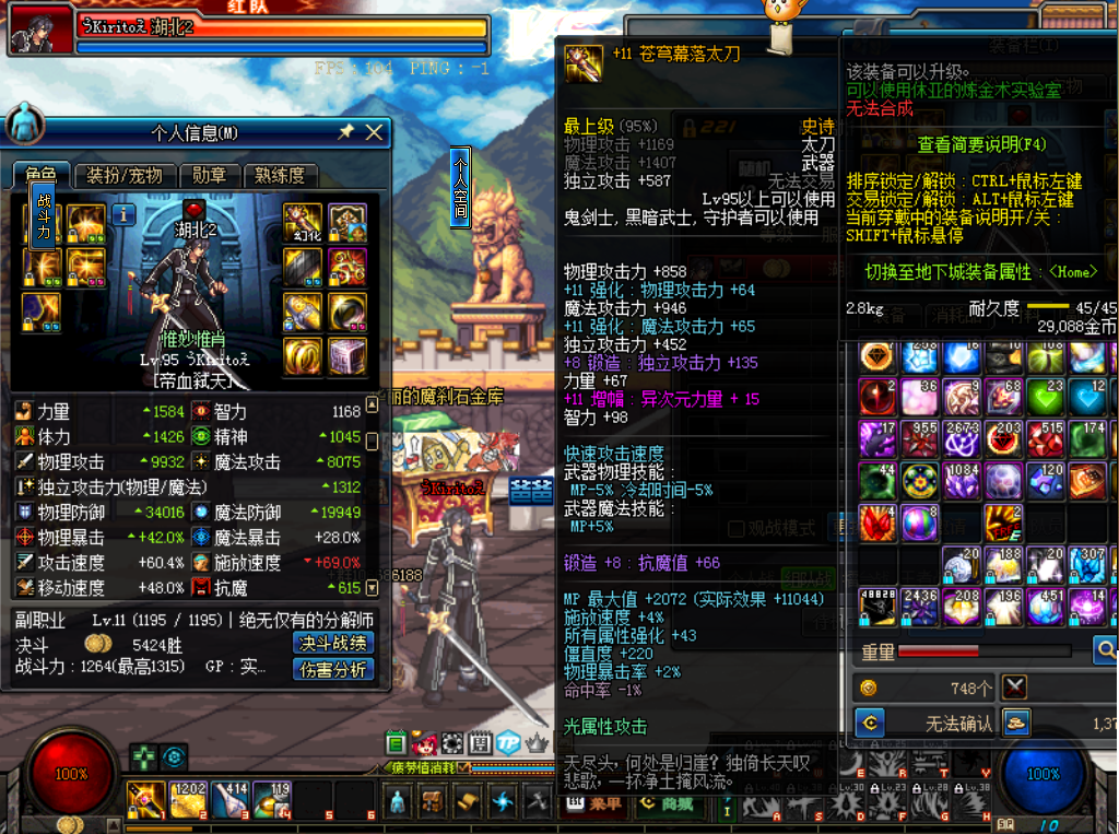 苏大大、跨2桐人红眼PK场1639力60速48移1312独立