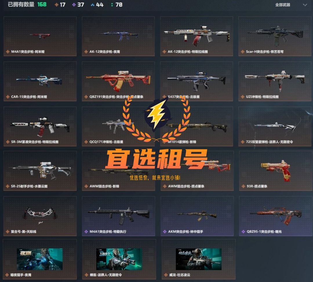 皮肤号 无币皮肤号⚡红狼电锯惊魂影锋北极星薯条特斯拉全套30金⚡战斗部门6+6⚡监狱已开⚡宜选租号