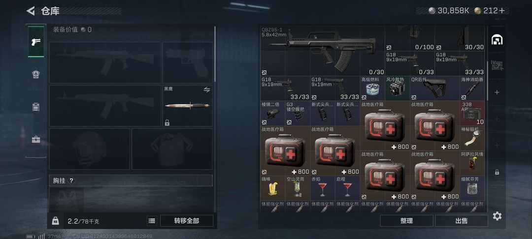 千万哈夫币 4级体力+4级负重+高爆低压糖人号适合带老板猛攻选手+9格体验卡,上号的时候请自行使用