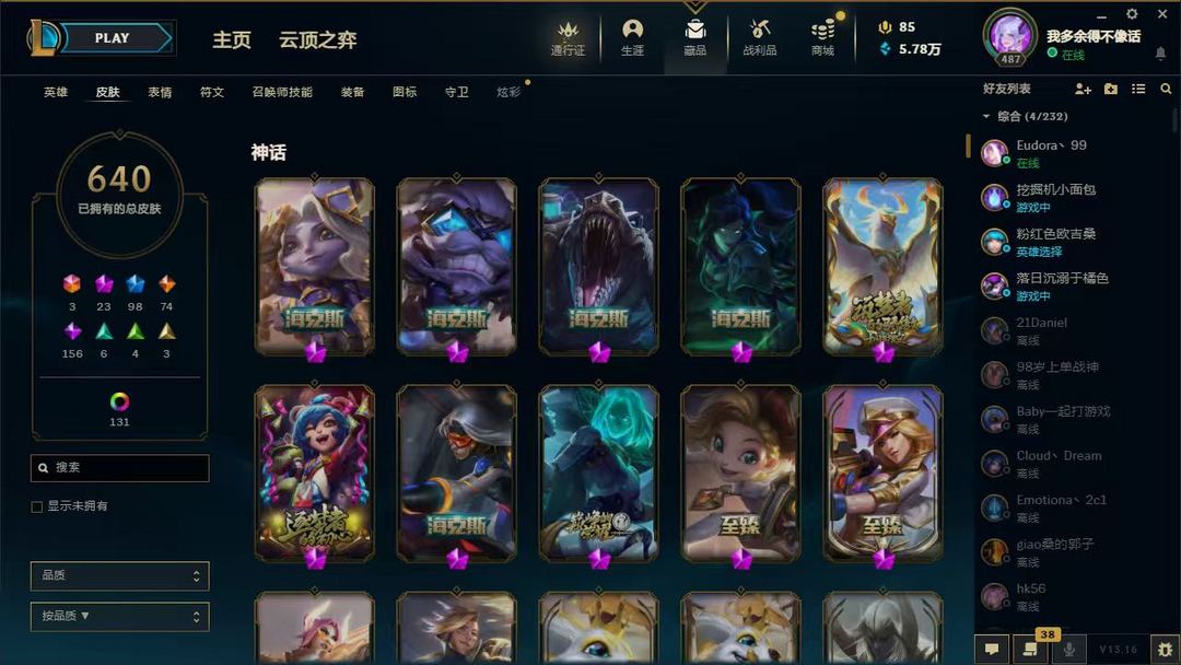 ██ 全英雄 1200皮丨30神话丨可排位丨金卡莎丨泳池女警丨战斗永恩丨玉剑男女刀丨神龙李青亚索
