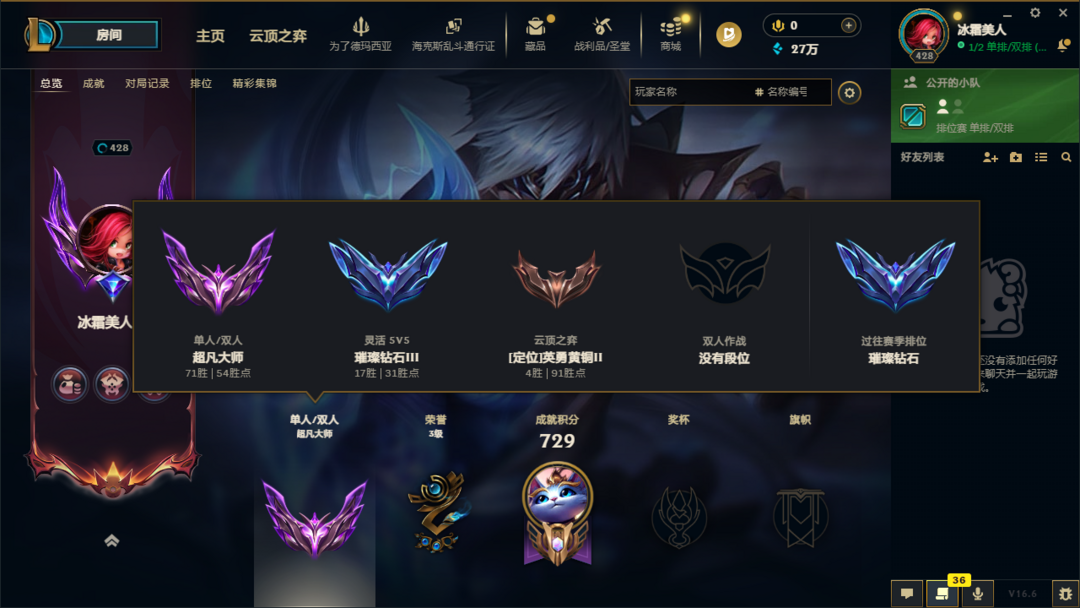 段位:429级 超凡大师