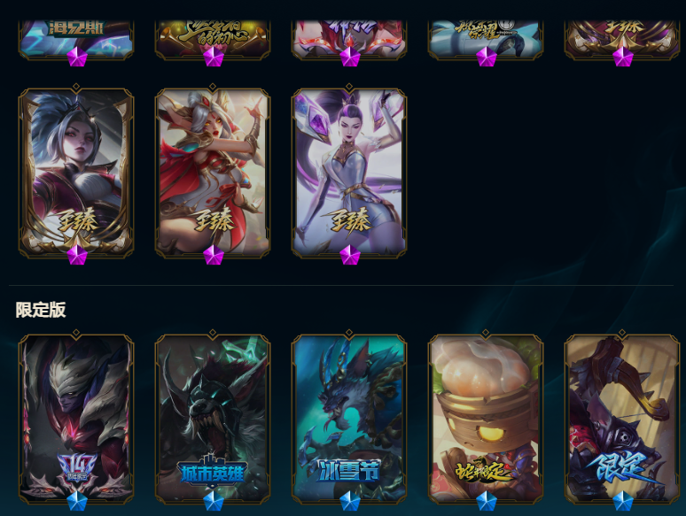全英雄,限定皮肤多,可排位,200+皮肤,踏雪寻梅,至臻皮肤多水晶圣骑艾希、海克斯科技牛头