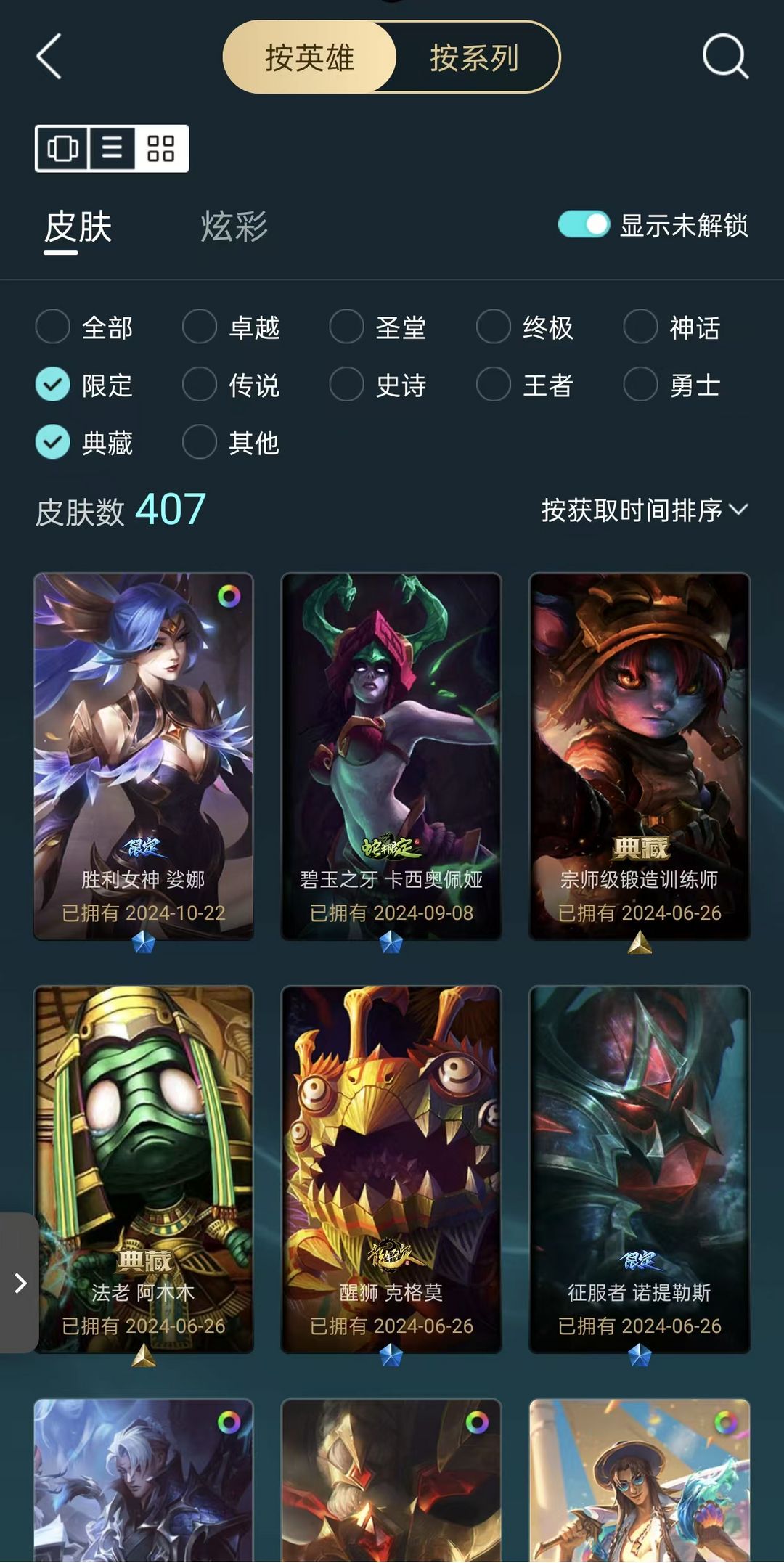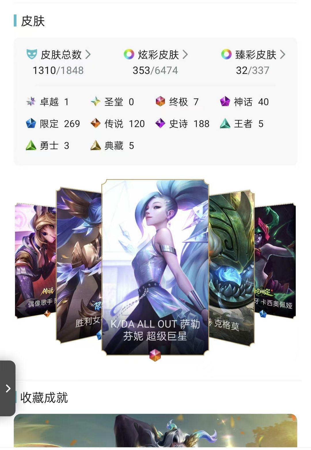 装备描述:1310皮肤,353炫彩,32彩臻,168英雄
