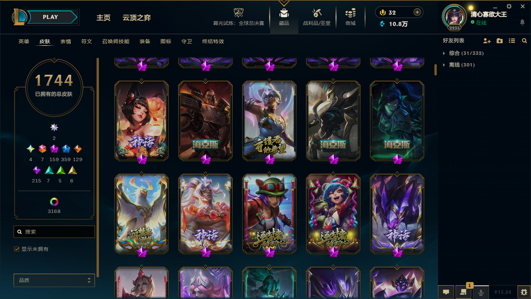全不朽圣堂全神话皮1794原皮✌️云顶全至臻不朽✌️3217炫彩129臻彩✌️1704小小113棋盘