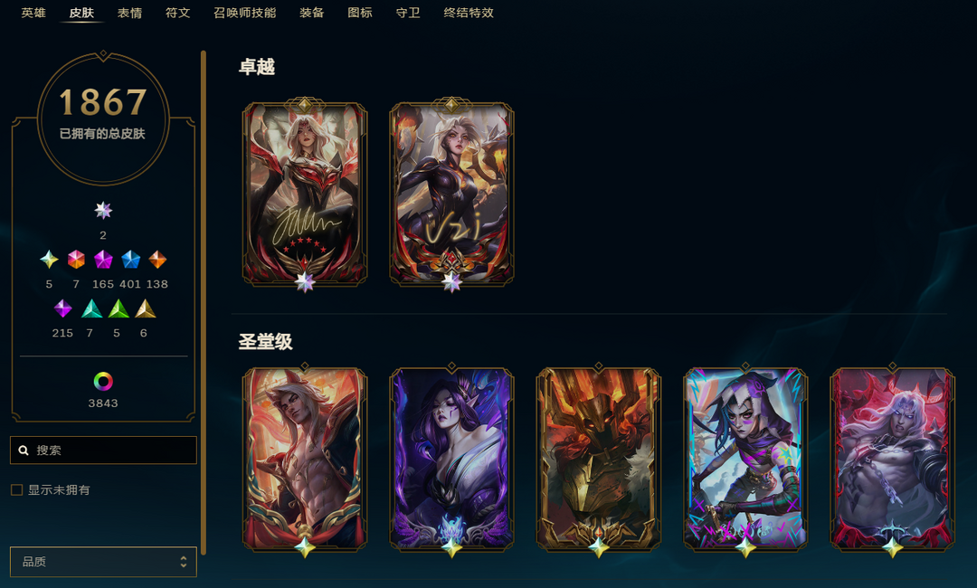 土豪ID5555⭐1868原皮⭐339臻彩⭐10色龙虾⭐全套年限⭐全圣堂⭐各种稀有限定皮
