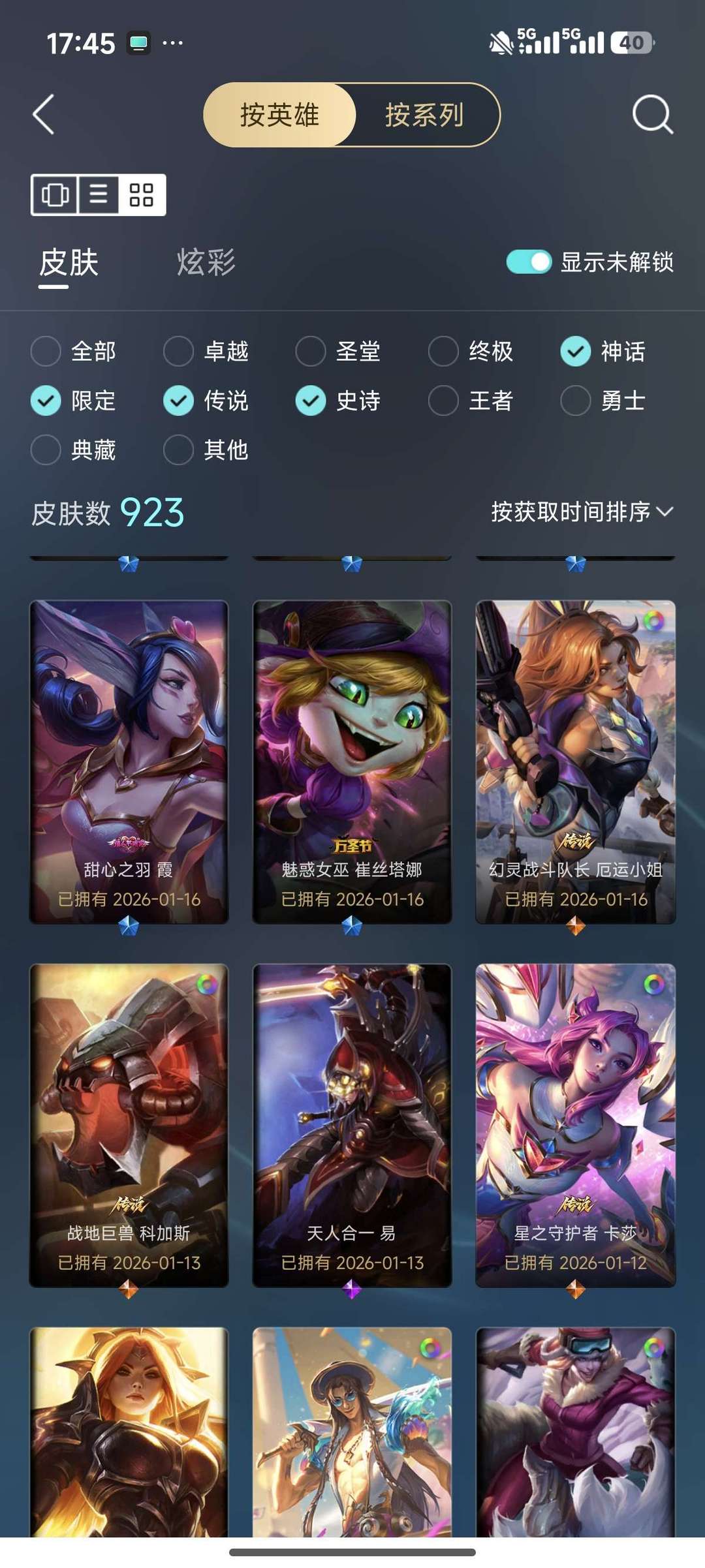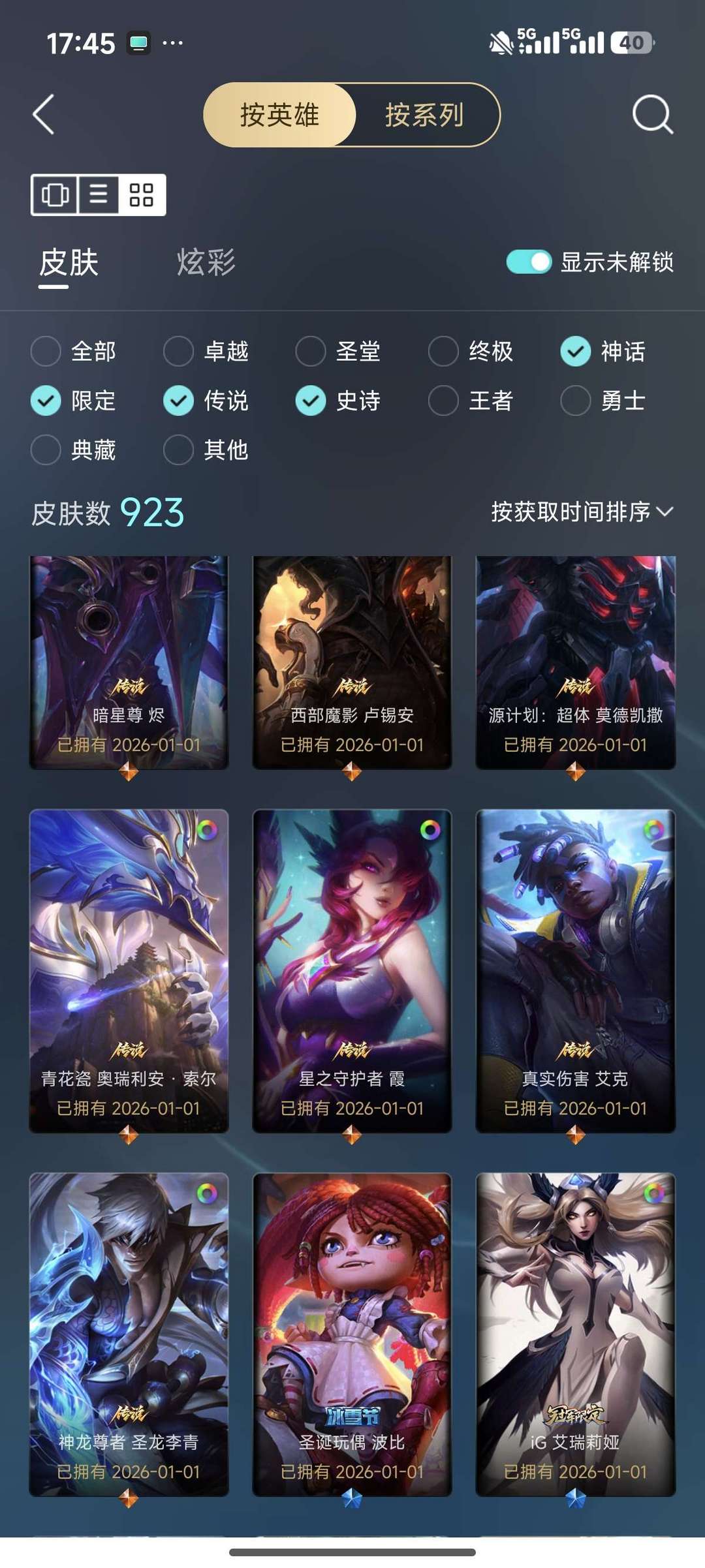 联盟五区可排位全皮653 原皮535 炫彩68 低胜率号极速上号