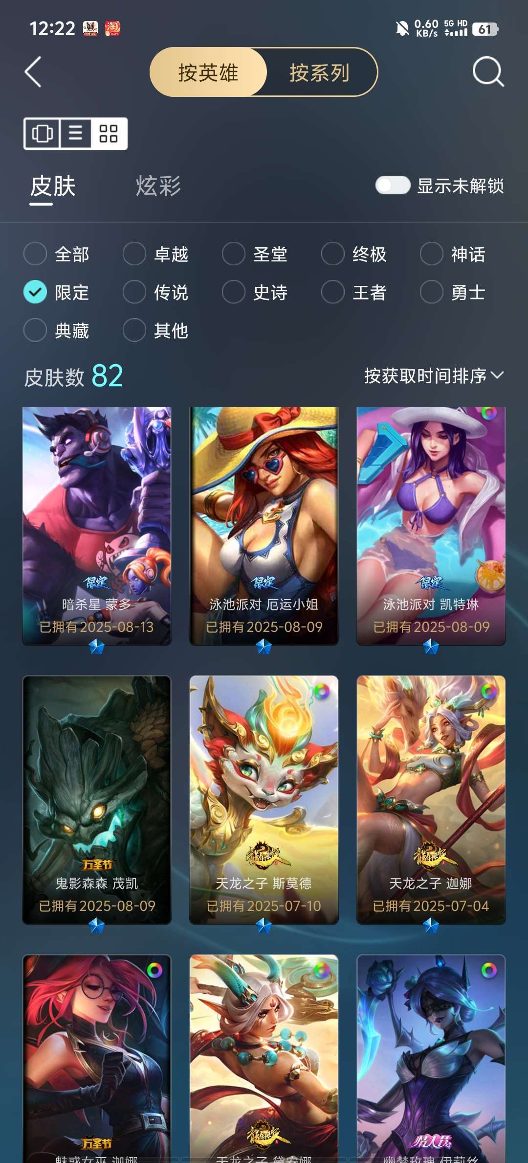 361皮肤可排位 龙马烈焰全皮肤 圣洁神王诺手 圣堂铁男 拉克丝熊猫全臻彩 各种至臻限定传说皮肤
