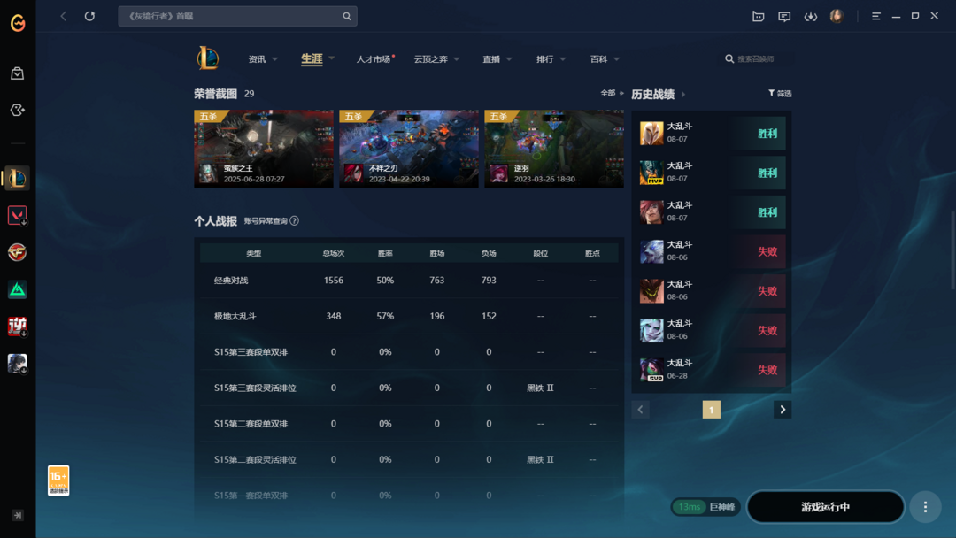 段位:353级 当前赛季无