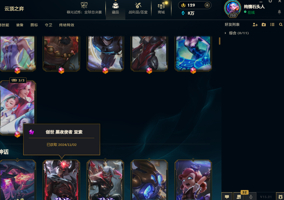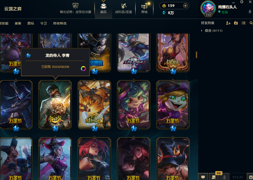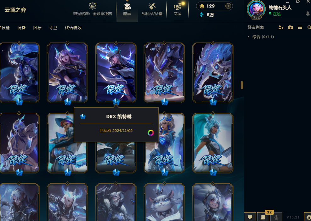 5000皮肤龙瞎钻石可排位9终极圣堂级金克斯双城套创世亚索龙猴创战纪全套DRX-EDG-IG-SKT