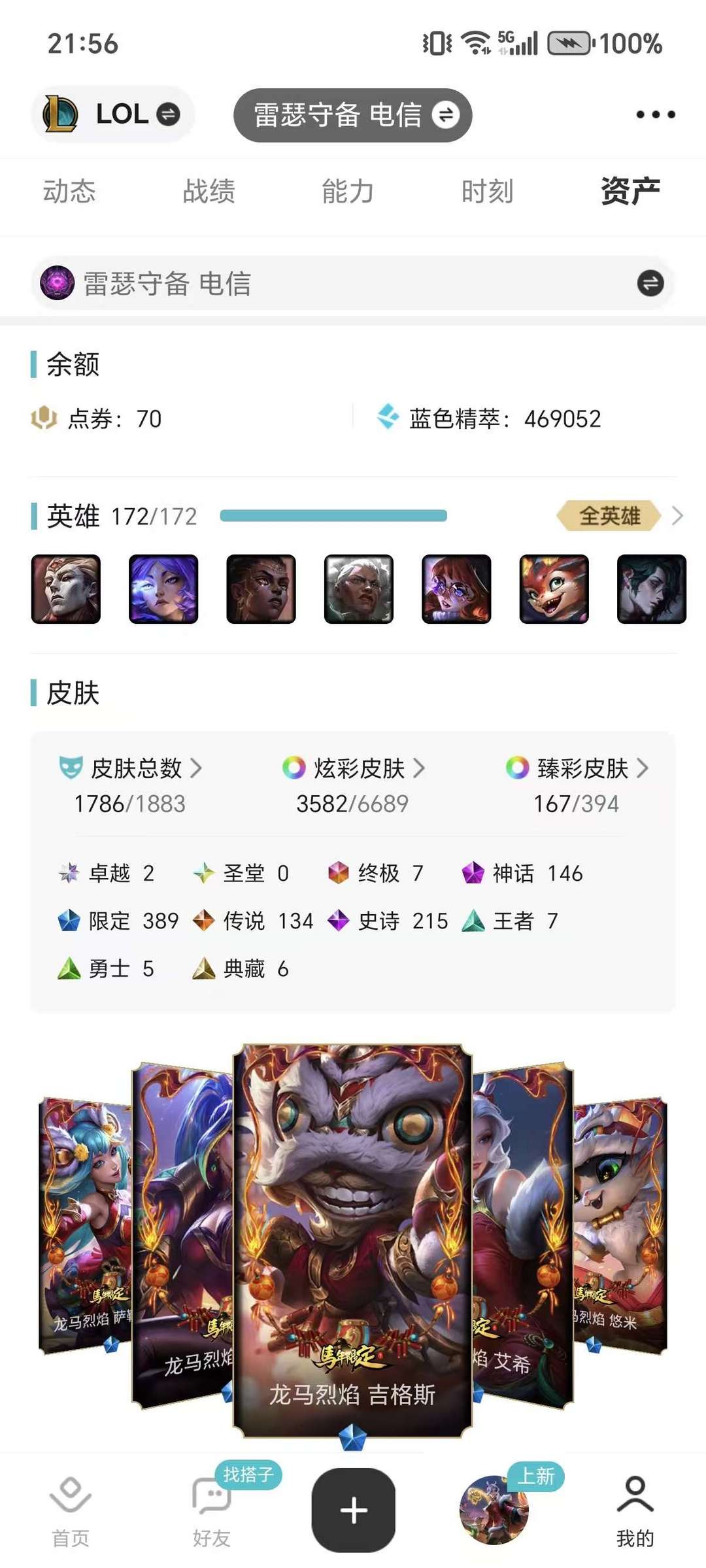 装备描述:全英雄,9500皮肤。至臻阿狸小鱼女枪锤石塞纳佐伊亚索星妈,七色龙瞎,斩星剑圣,穿星赵信,冰原女警,庆典女皇,战熊骑士,海克斯鳄鱼波比龙龟牛头。全年限,全周年,全皮肤套。