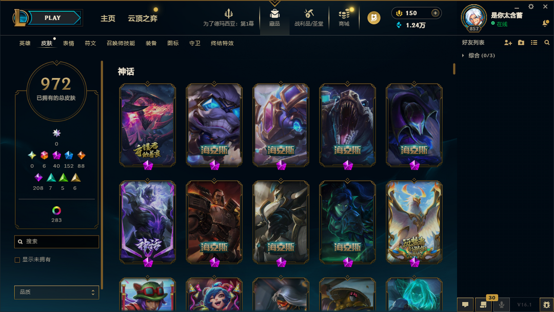 ██ 全英雄 1800皮丨50神话丨可排位丨龙瞎丨IG卡莎丨穿星创星丨甜心格温丨莲华瑟提丨神龙李青