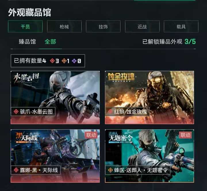 千万哈夫币 三红皮❤刀皮北极星❤道具九格❤蚀金玫瑰⚡水墨云图⚡露娜天际线⚡7体6负