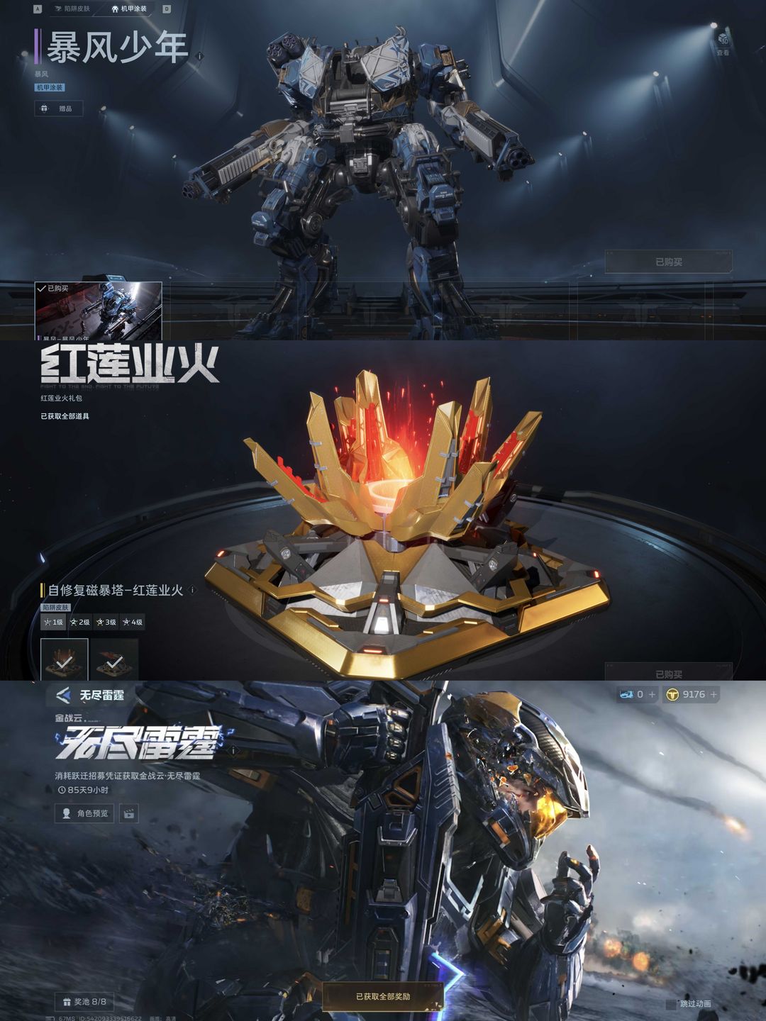 装备描述:全商城已清空+无尽雷霆+黑暗天使+血色蔷薇+能源之影+红莲业火+幽冥毒皇+飓风之龙+雷霆999+暴风少年+通行证