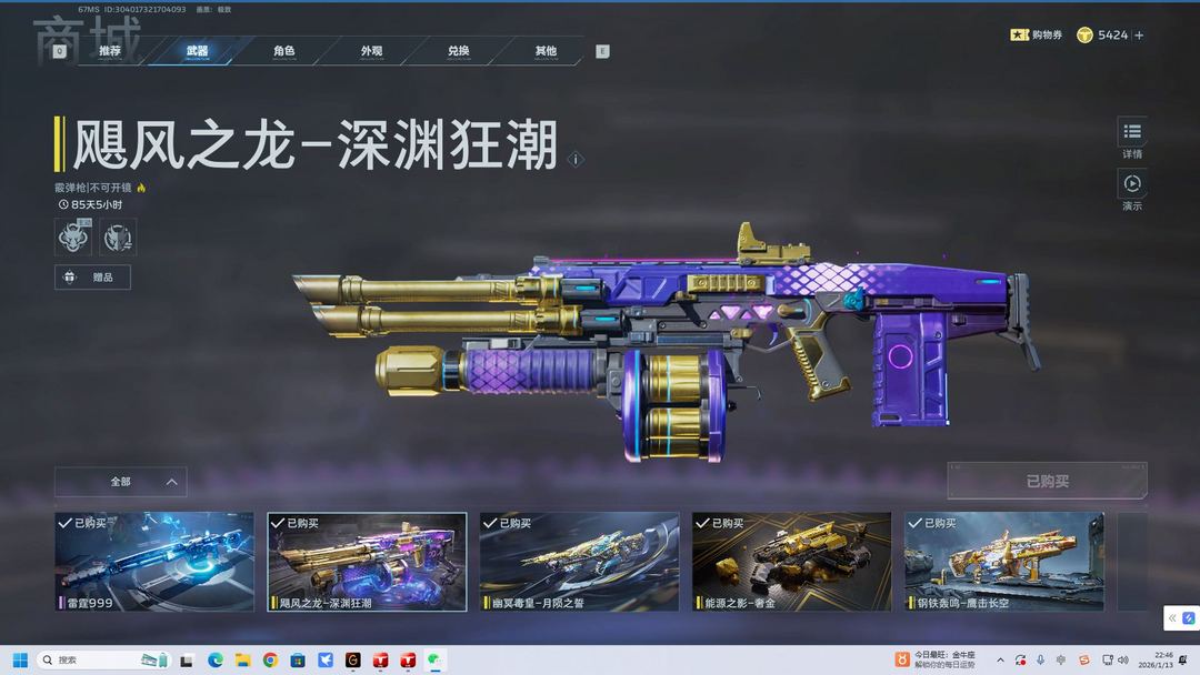 限制: 撤单率<40%才可租用此帐号装备描述:死神+振弦=暴击穿透弹射流,纯白毕业芯片,活动拉满丨金战云无尽雷霆丨飓风之龙-深渊狂潮丨死神猎手-眩紫狂潮丨能源之影奢金丨毒皇月陨誓丨钢铁轰鸣-鹰击长空丨黑暗天使提娜丨安琪儿血色蔷薇丨红莲修复磁丨通行证全拉满,道具皮肤全部搬回家!