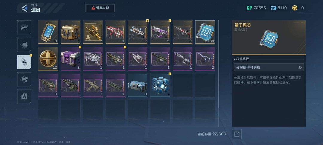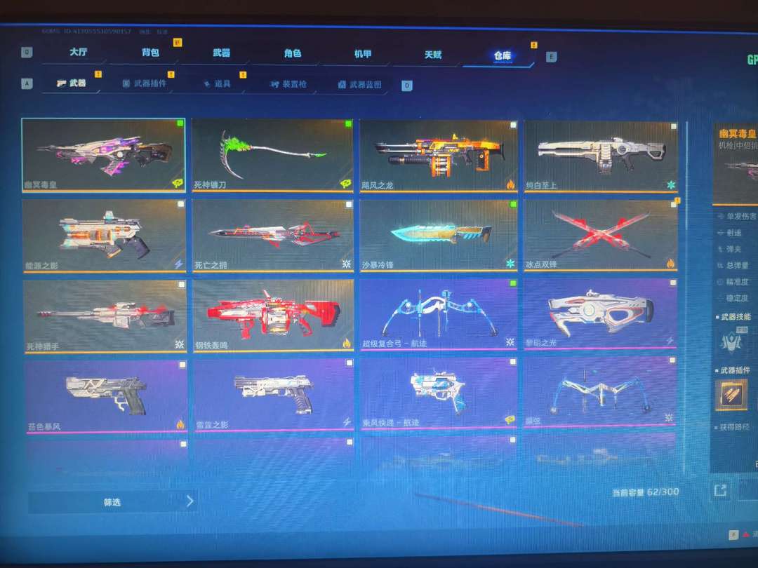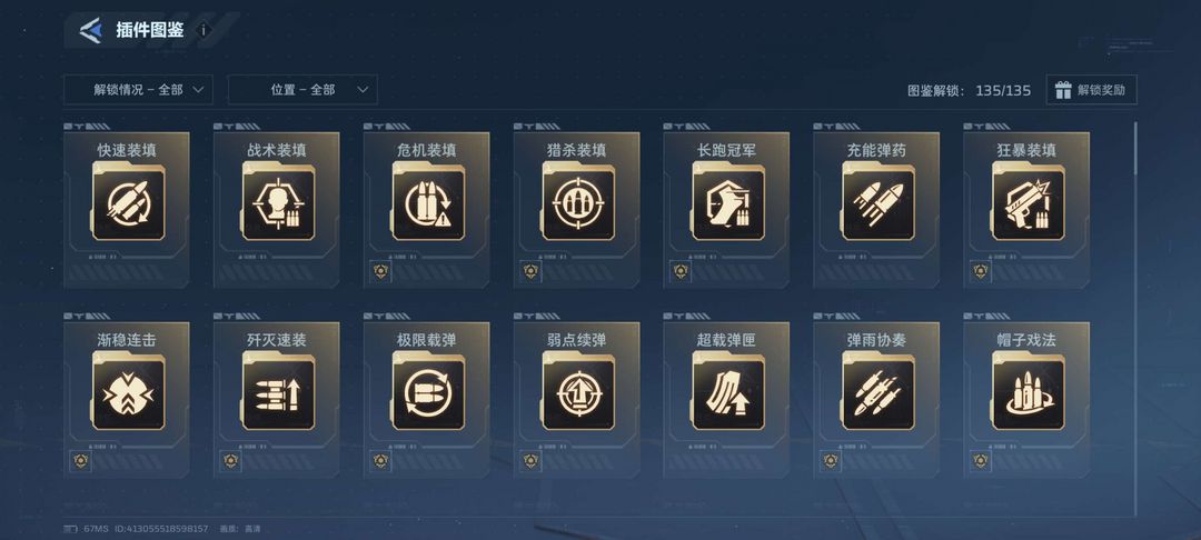 全部金色武器解锁 全部插件解锁 仓库9000多个插件碎片 猎场全部挂饰解锁 机甲全部解锁