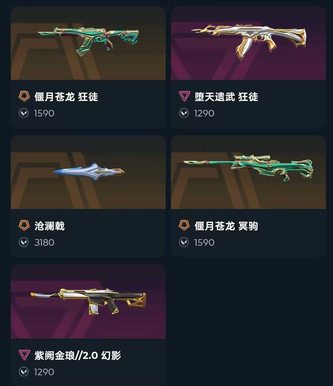 满级皮肤⭐沧澜戟,狂徒偃月苍龙 堕天遗武⭐幻影紫阙金琅⭐冥驹偃月苍龙❤️满特效