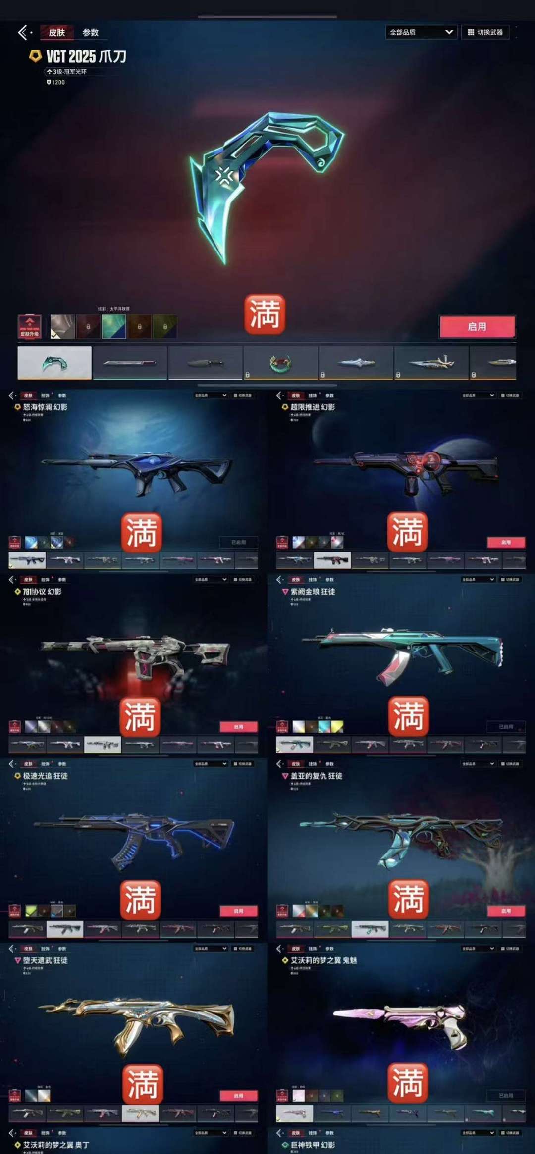 历史赋能✘VCT2025爪刀✘侦查力量幻影✘盖亚✘781协议✘紫阙金琅✘堕天遗武✘怒海惊澜✘艾沃利