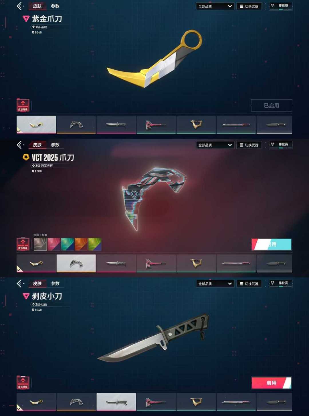 (特惠日租)VCT爪刀紫金爪刀剥皮小刀❤盖亚堕天狂徒❤砰砰队离子幻影❤艾沃莉鬼魅光明哨兵正义