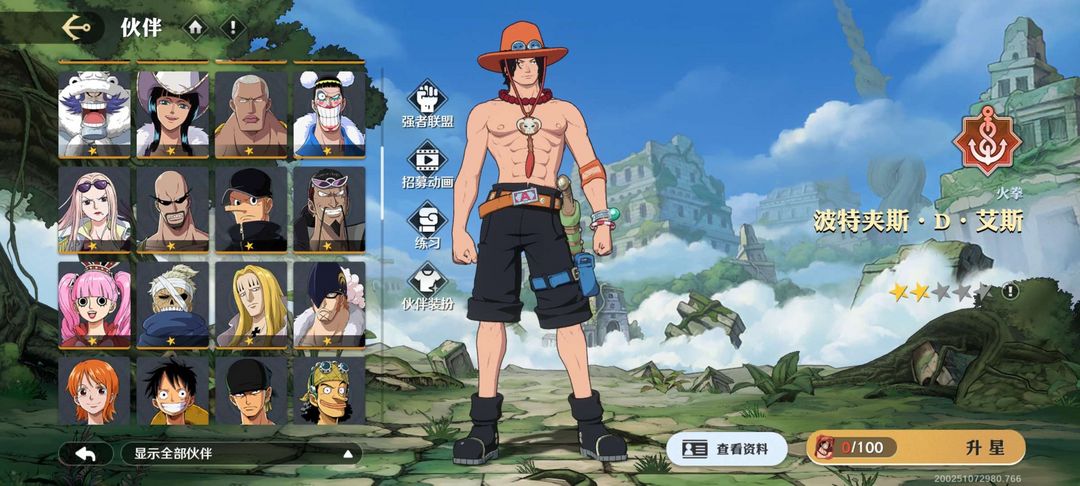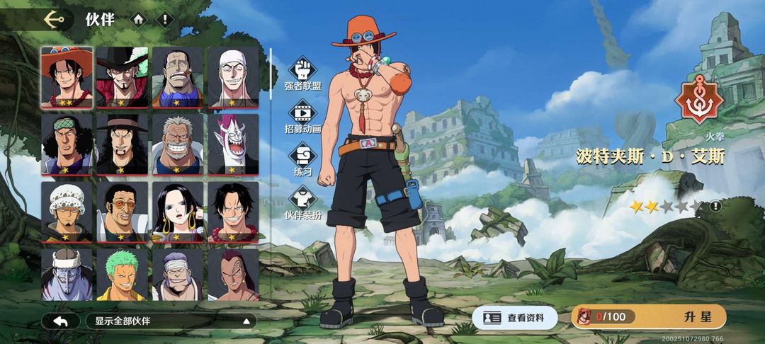 顶上艾斯已出,限定都有,不是通行党,通行证只有莫利亚,练度不算太高,还请见谅