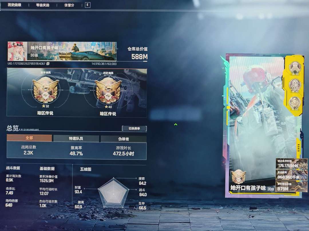 荒坂利刃,逐夜利刃,30级传说,437m现金,仓库588m,战神套随便用