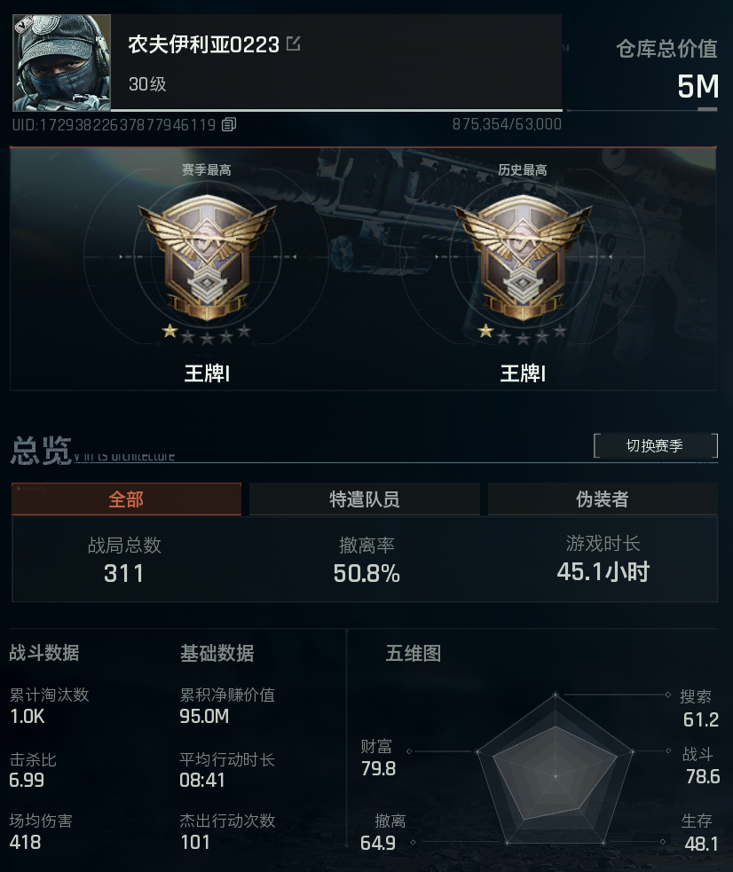 ⭐纯币340W⭐战斗分78.6⭐2*2安全箱⭐5M⭐30级地图全开⭐强封猛攻⭐