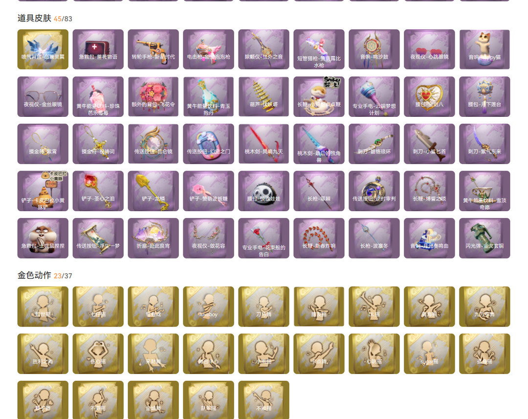 限制: 租号1次及以上 |装备描述:红皮1;金皮5;紫皮18;道具皮45;皮肤:巫铃儿-镜生遗梦,逍遥-莲华渡,巫铃儿-镜花辞,薇薇安-圣光之谕,莉莉-瑶台梦,小黄-遗失的童话,小黄-呱呱雨衣,艾伦-黎明猎手,艾伦-绒绒对决,爱丽丝-丝缕哀歌,兰-千夜星谕,巫铃儿-素影瑶光,爱丽丝-耀眼的你,莉莉-莓果陷阱,莉莉-情公主,阿念-迷途僵宝,零-青云逸歌,小黄-异色序曲,薇薇安-仙锋小姐,莉莉-除妖小师妹,零-搬开山,逍遥-绣春逍影,阿念-庆宴绮愿,爱丽丝-甜梦派对;道具:喷气背包-晶澜灵翼,桃木剑-最后的独角兽,电击枪-甜蜜泡泡枪,长枪-罪棘,铲子-龙鳞,桃木剑-凤鸣九天,夜视仪-金丝眼镜,葫芦-伏妖塔,长鞭-新春炸响,黄牛能量饮料-青玉抱丹,急救包-蔷薇物语,传送按钮-幻宠之门,腰包-惊魂娃娃,音响-鸣沙鼓,铲子-赞萌波板糖,黄牛能量饮料-雪顶奇愿,音响-happy猫,长枪-波塞冬,长鞭-小狗蛇点点鞭,夜视仪-心跳眼镜,腰包-宝剑八,急救包-土拨鼠捏捏,摸金符-祝祷词,专业手电-云端梦想计划,夜视仪-敛花容,长鞭-缚誓之锁,折扇-赴此良宵,闪光弹-金戈玄铜,铲子-卡皮巴拉小黄豚铲,刺刀-碧络琅环,除颤仪-弦外之音,短管猎