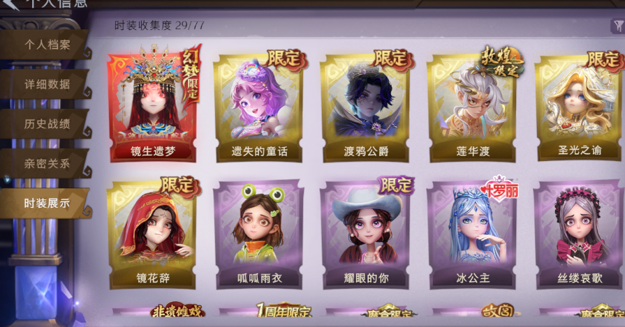1红5金15紫⭐晶澜灵翼✅镜生遗梦镜花辞莲花渡✅遗失的童话圣光之谕✅渡鸦公爵✅情公主冰公主
