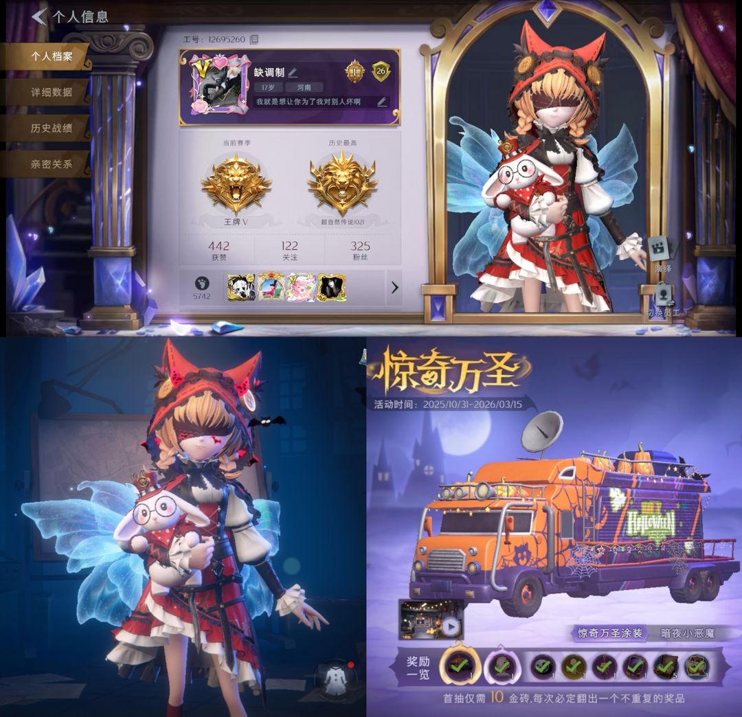 装备描述:故意撤单两次拉黑 一单一改密 全皮✨万圣载具✨莓果陷阱✨兔宝✨莲花渡满抽✨镜生遗梦✨1幻梦5耀世【满金皮+满魔盒+满紫皮+满氪条】