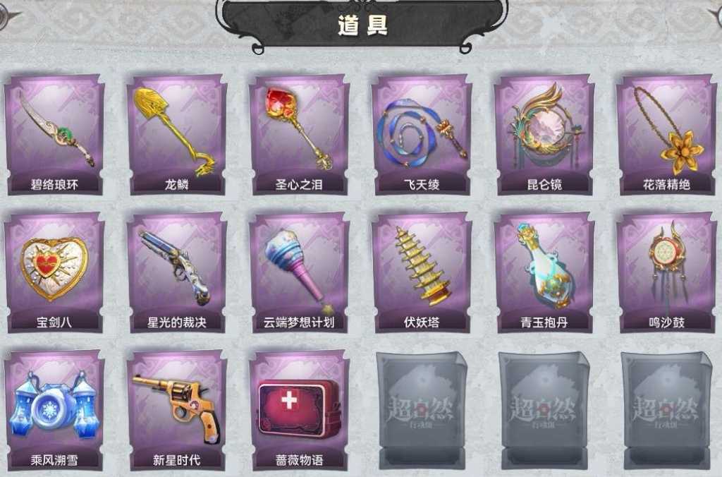 1金10紫15道具⭐圣光之谕情公主小师妹白光莹⭐阿念逍遥魔盒素影瑶光冰公主⭐昆仑镜花落精绝宝剑八青玉