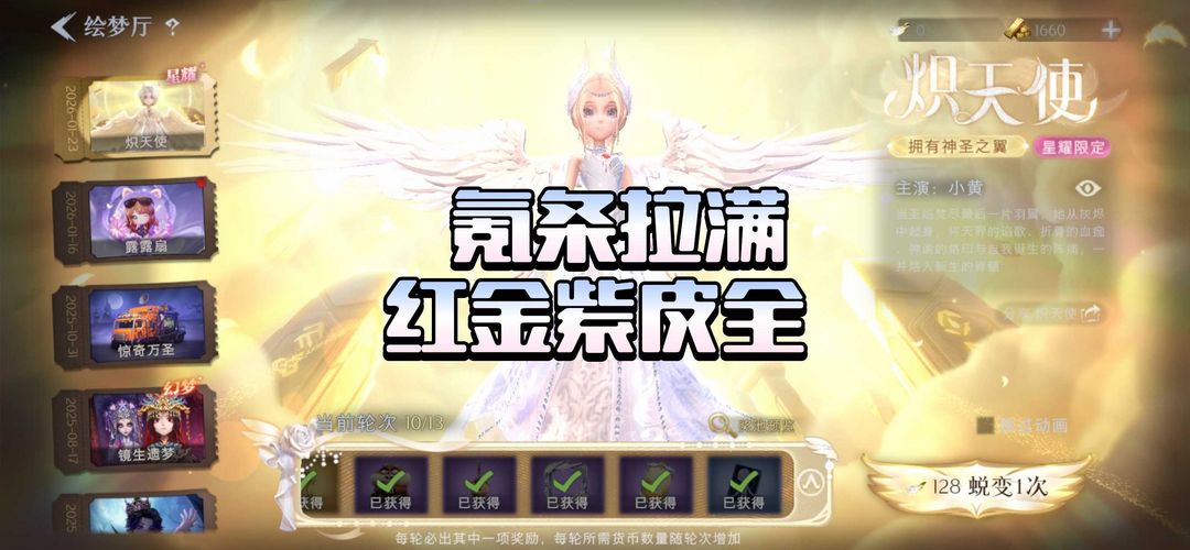 瑶台梦 炽天使⭐1幻梦1星耀7金全紫 全皮有兔宝⭐玛丽圣光之谕 万圣满配⭐青丘一梦赤炼将军 看描述