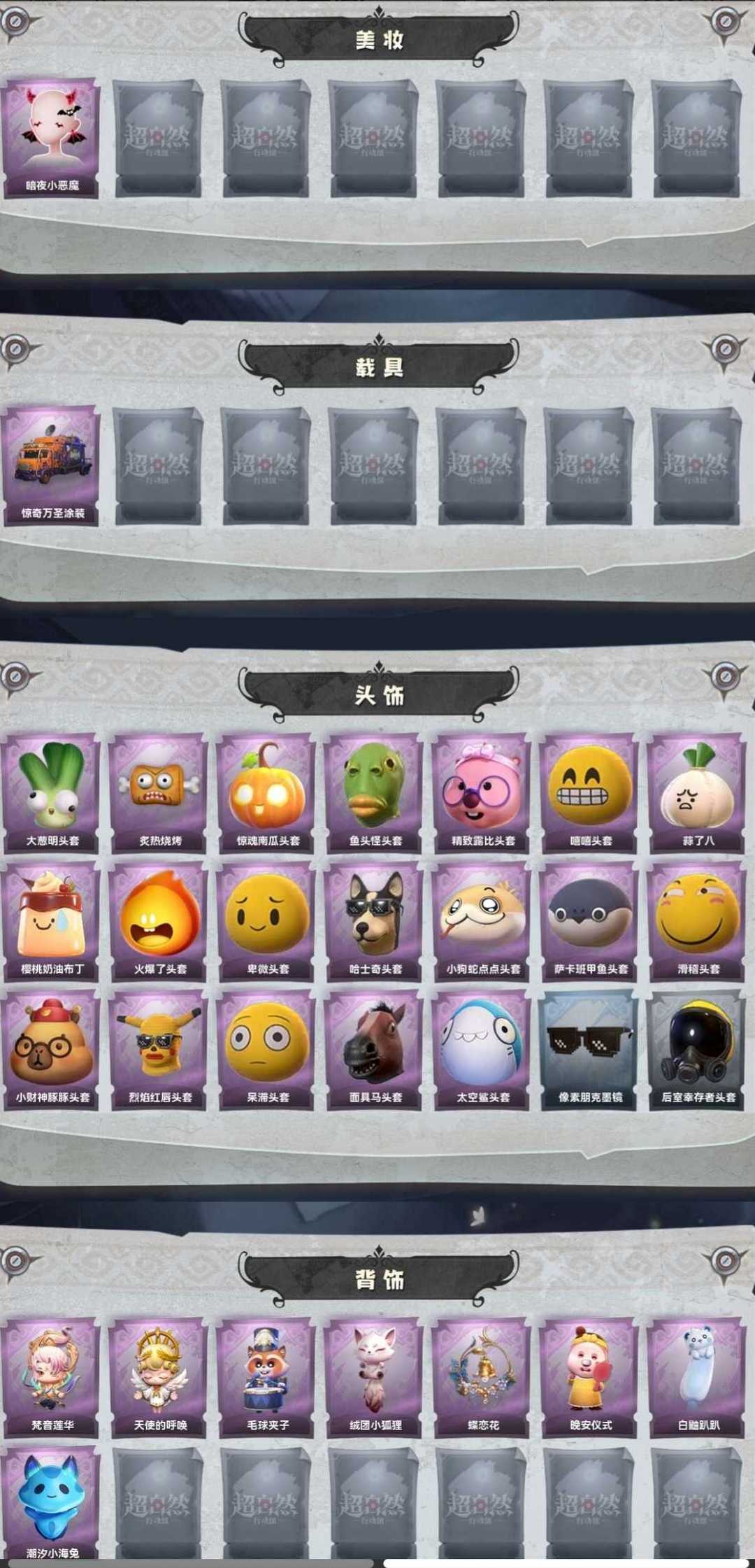 露露扇❤️暗夜小恶魔❤️惊奇万圣❤️渡鸦公爵❤️逍遥全皮❤️莉莉全皮❤️4金18紫29道具